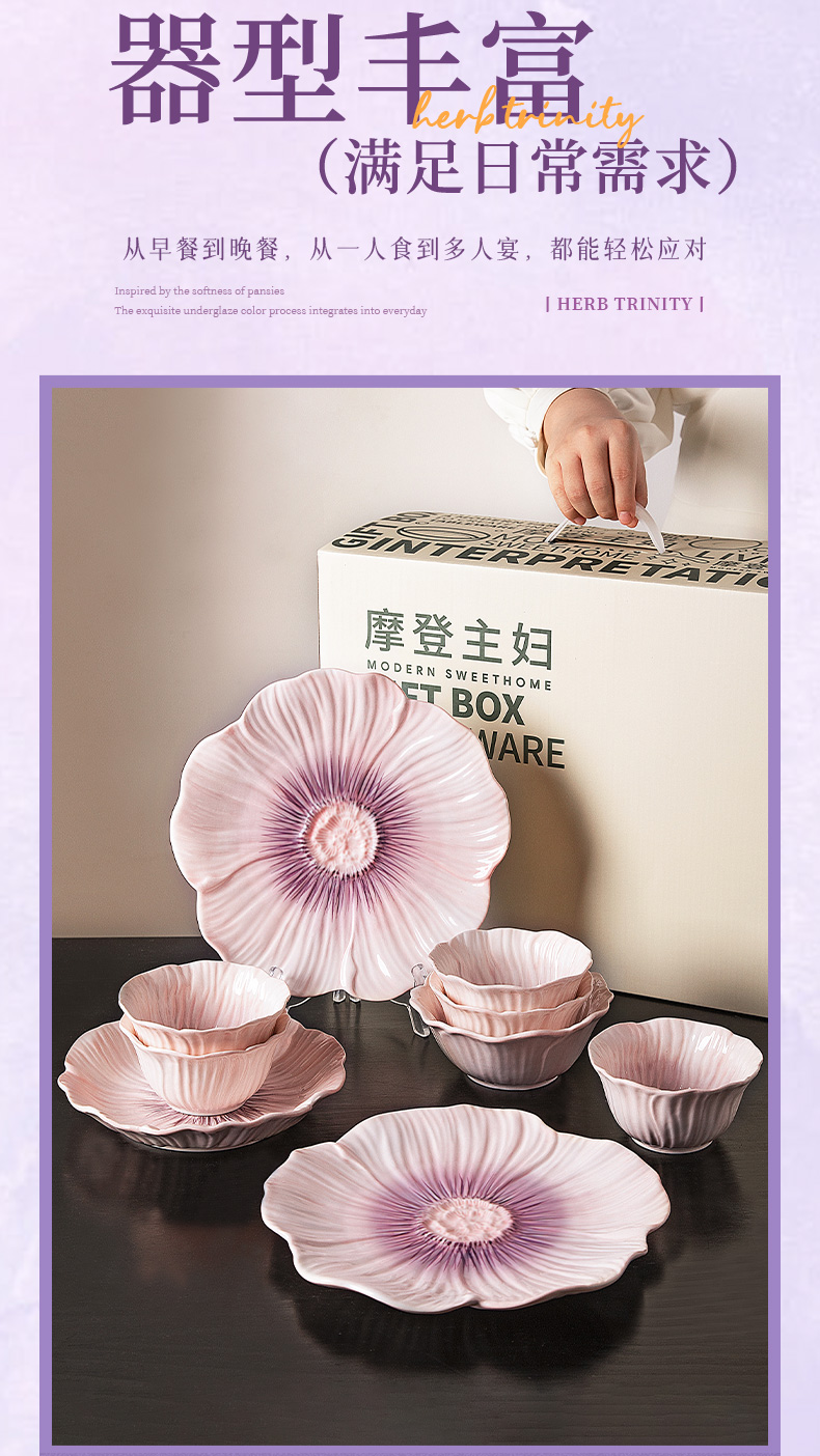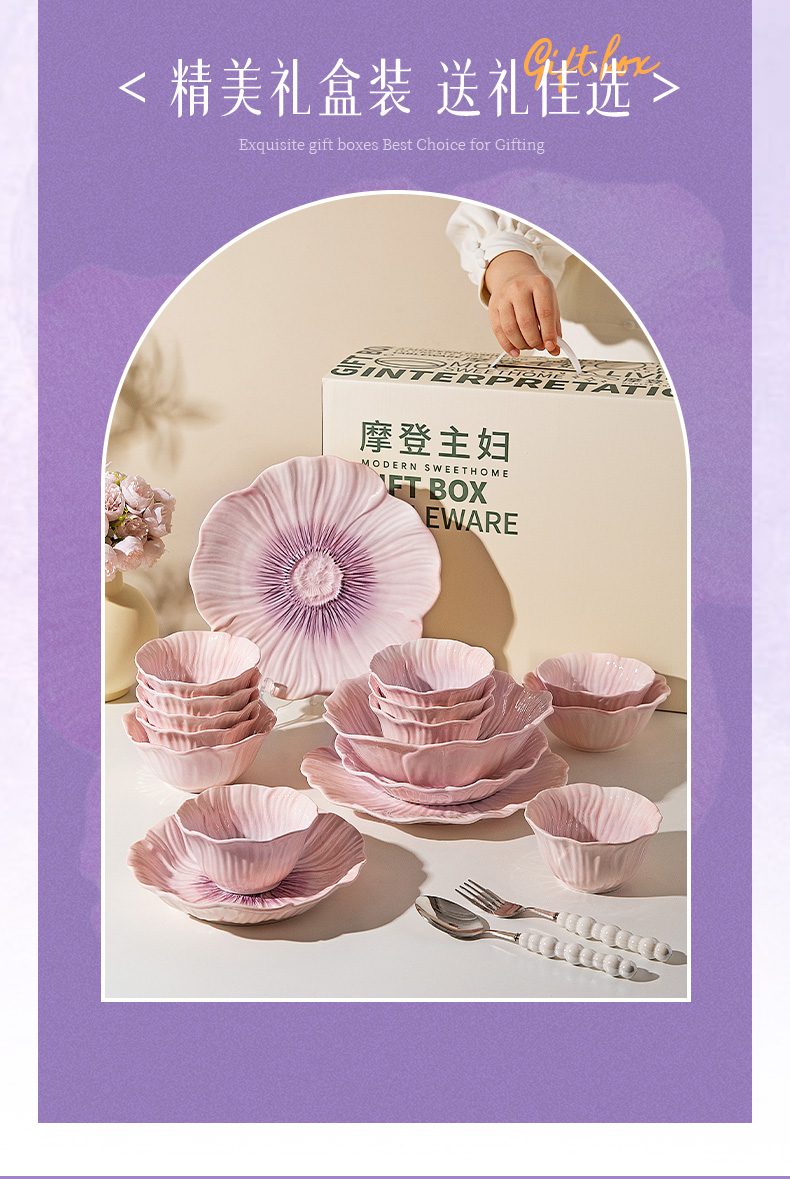 摩登主妇釉下彩餐具套装碗碟盘家用2025新款乔迁搬家新婚结婚礼物