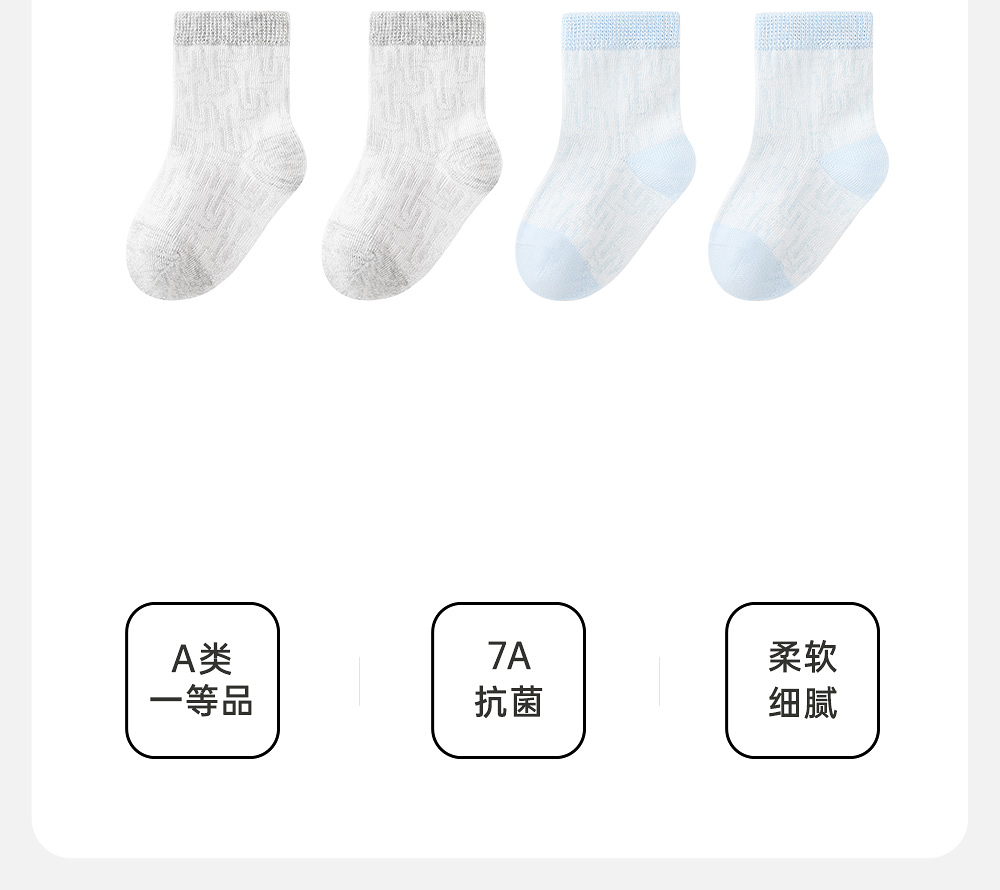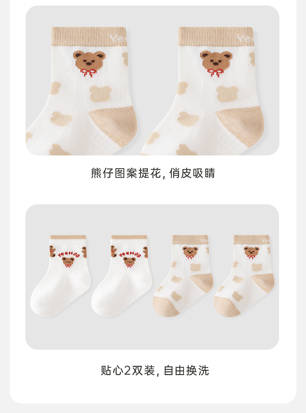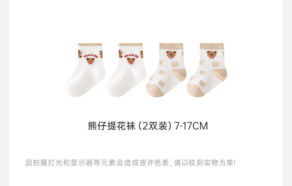 【商场同款】英氏儿童袜子四季透气提花袜抗菌男童女童袜子两双装