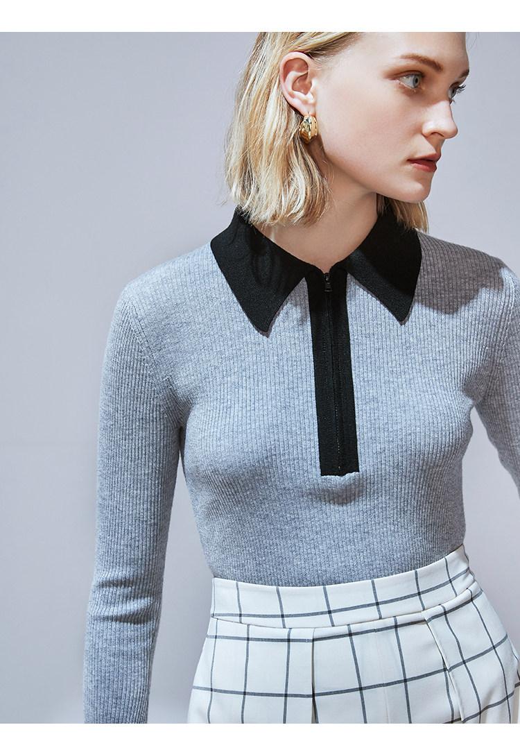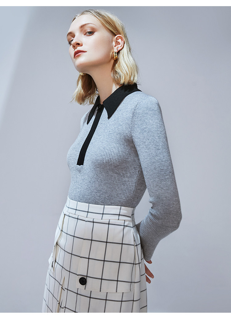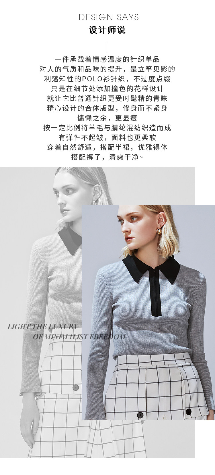 VIMAGE纬漫纪秋季新款气质修身翻领显瘦百搭针织上衣女套头衫V1401015