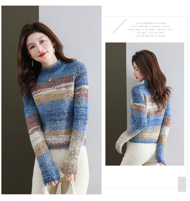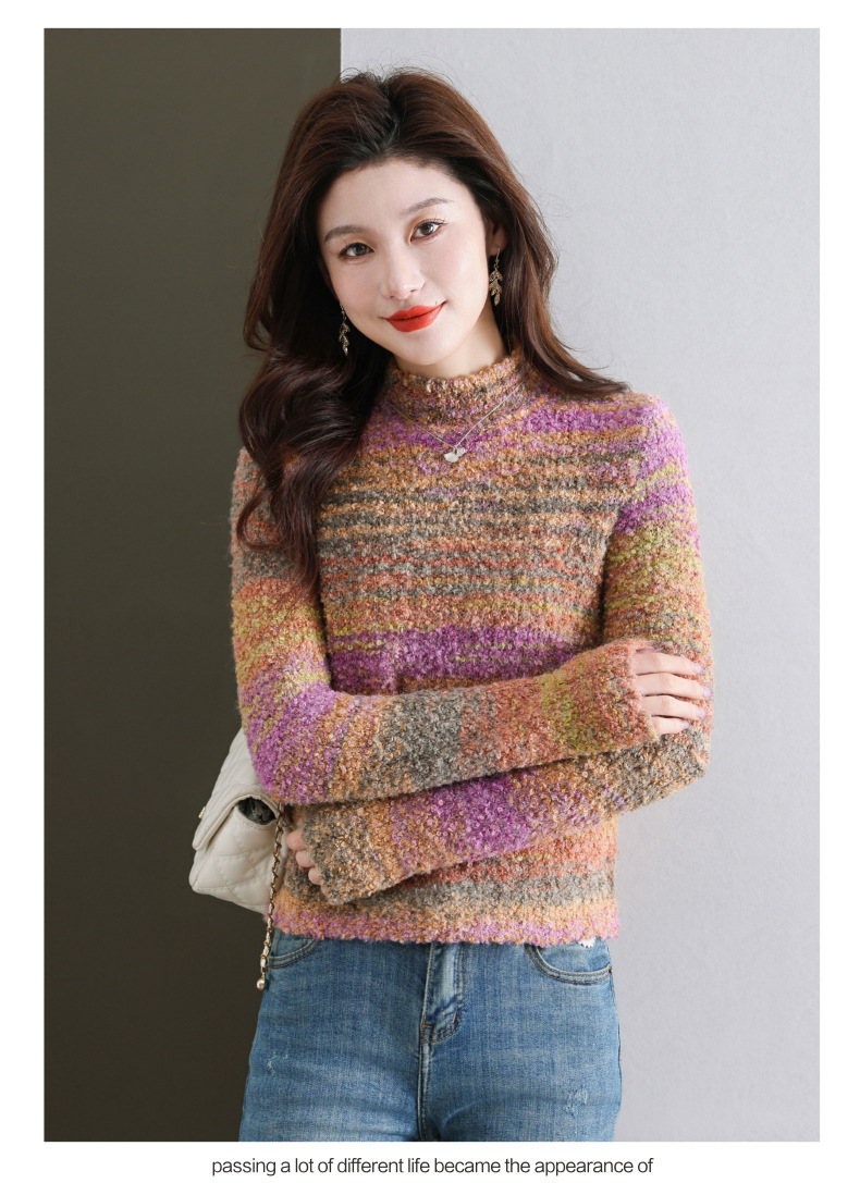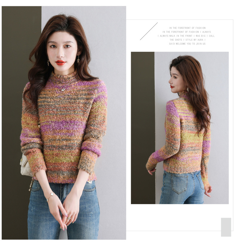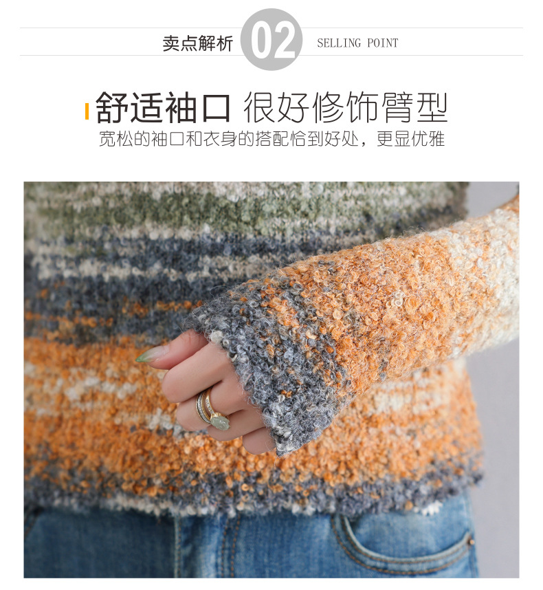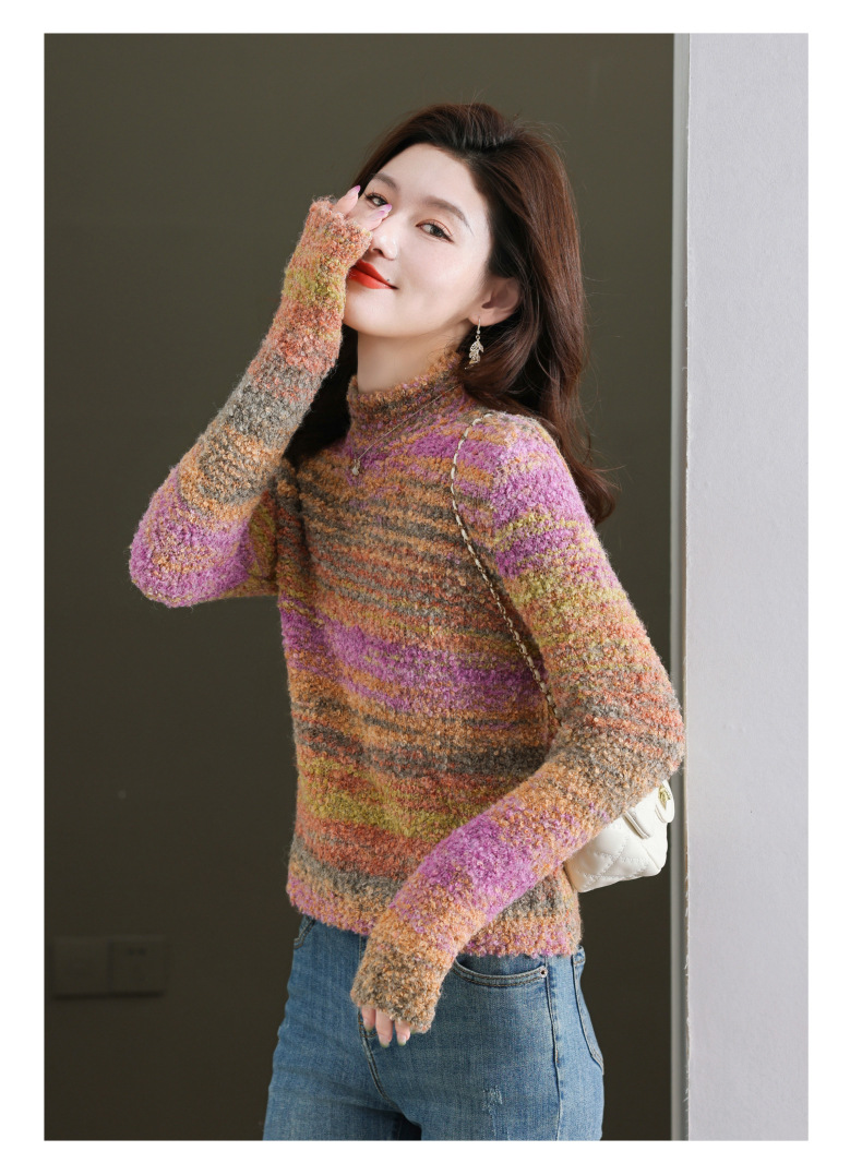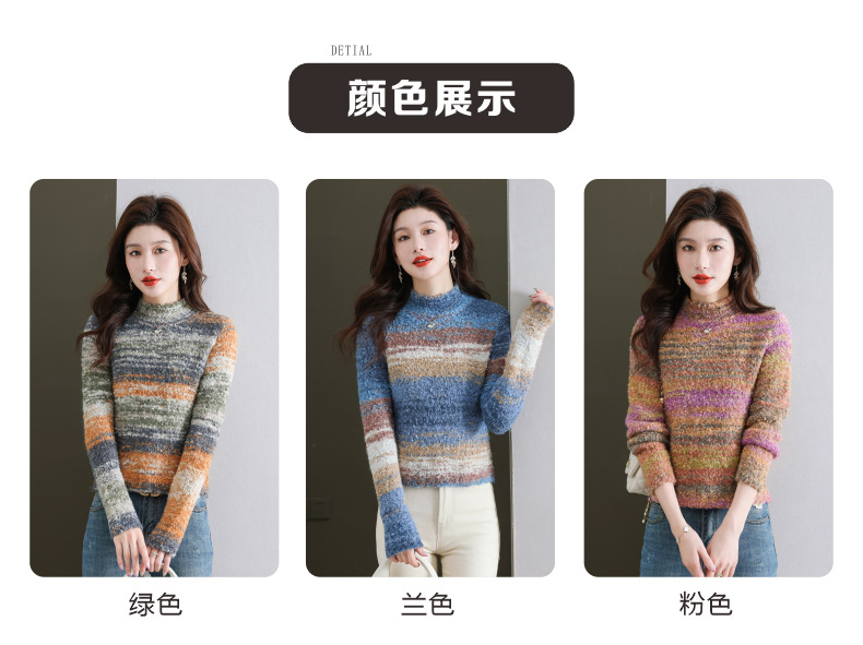 彩虹条纹圈圈纱毛衣,加厚短款打底衫洋气内搭上衣CC-103-A1897