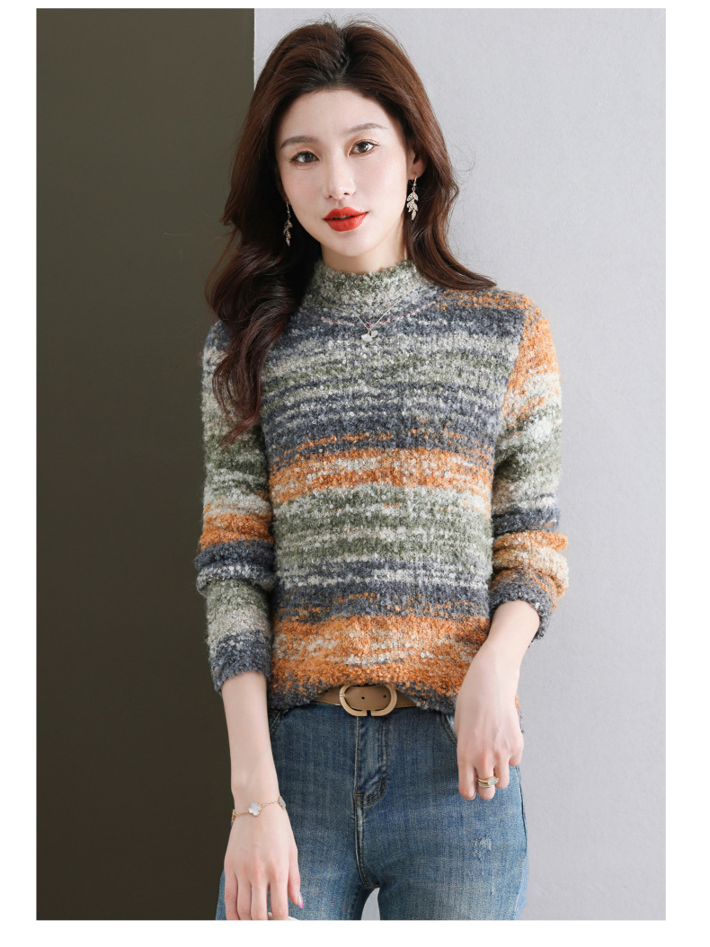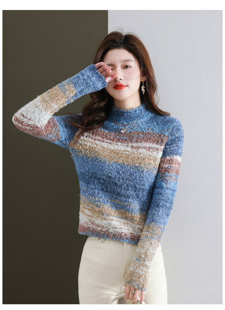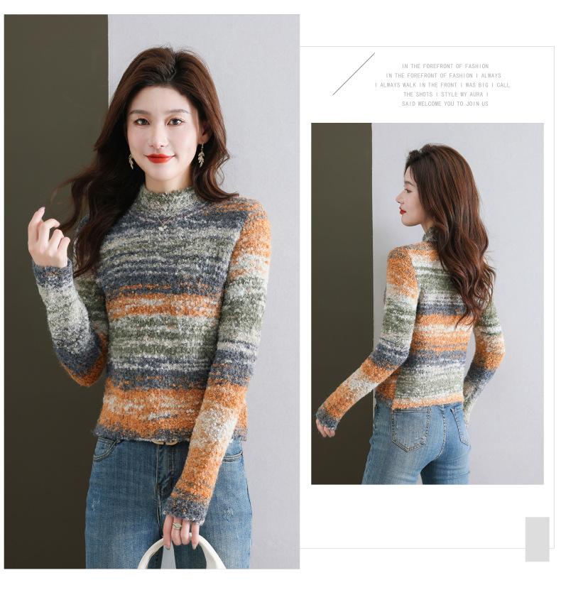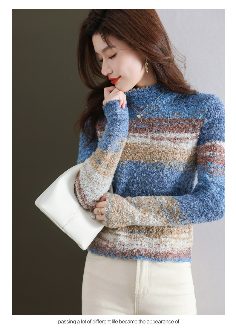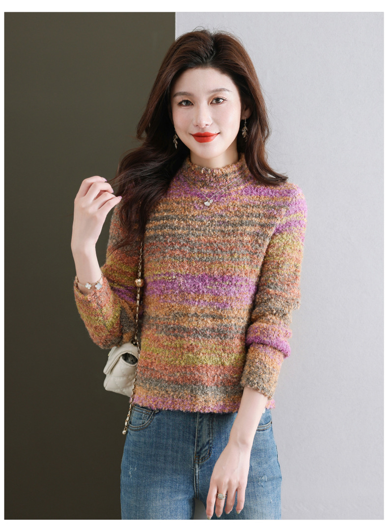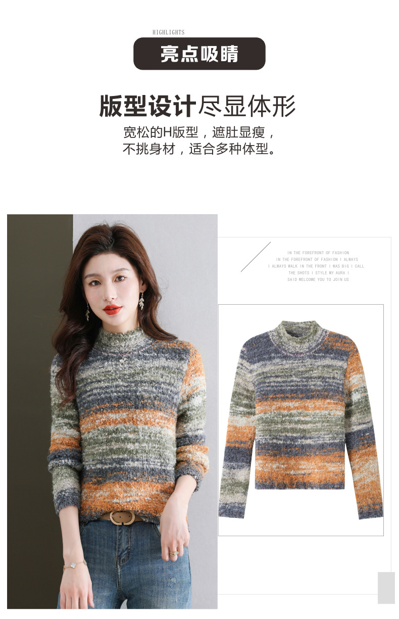 彩虹条纹圈圈纱毛衣,加厚短款打底衫洋气内搭上衣CC-103-A1897