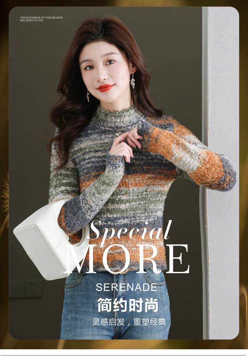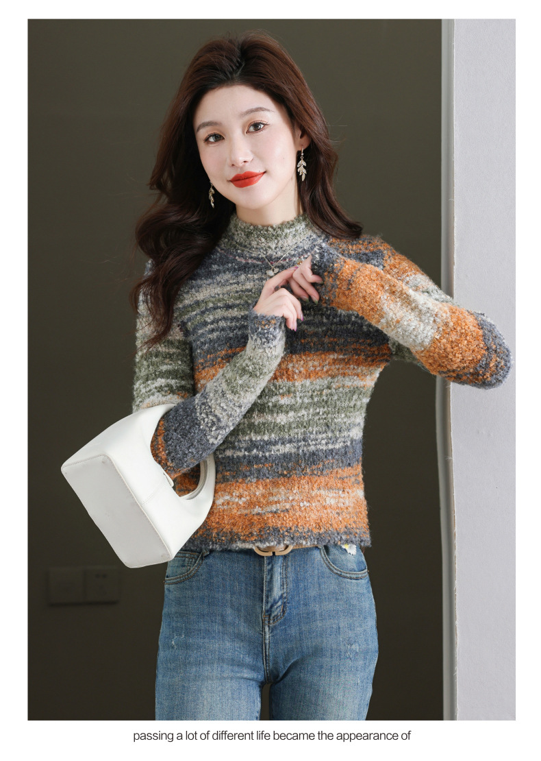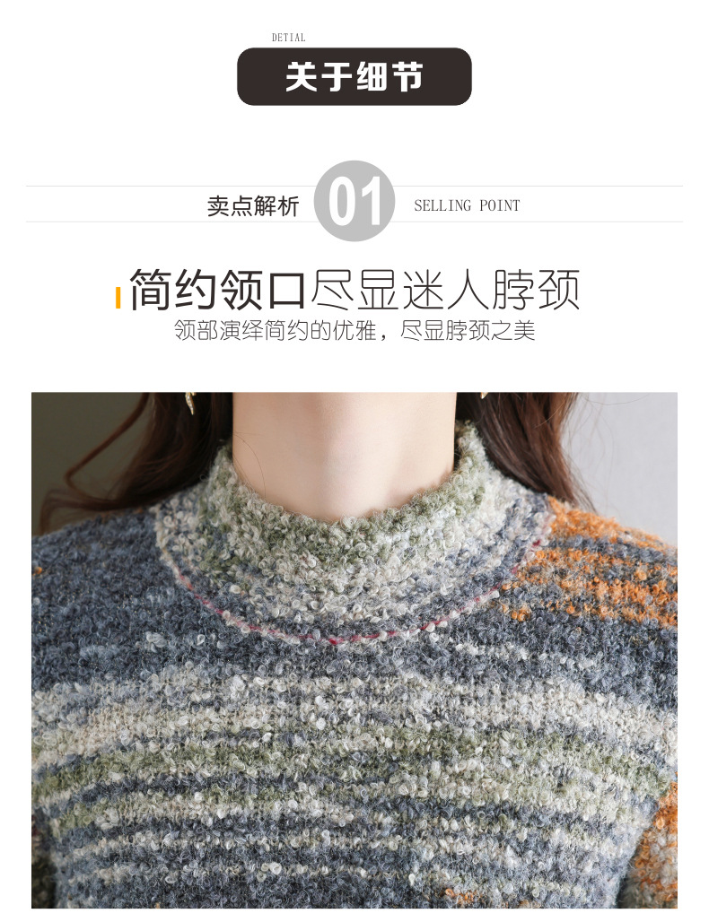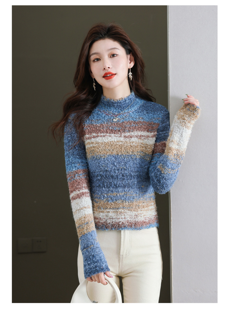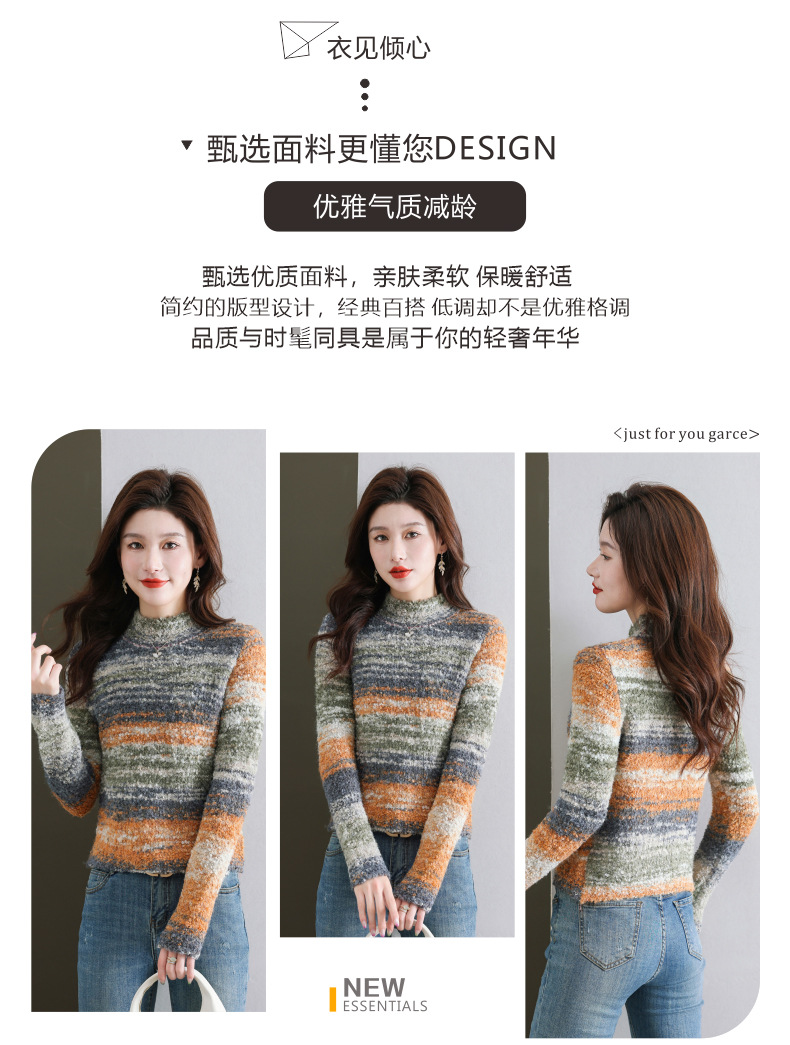 彩虹条纹圈圈纱毛衣,加厚短款打底衫洋气内搭上衣CC-103-A1897