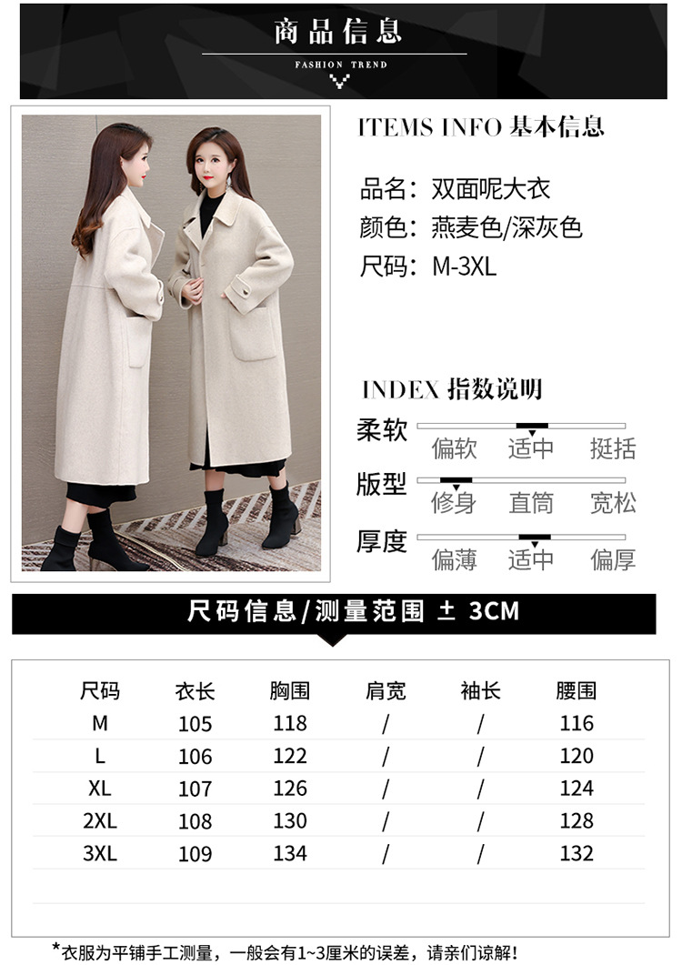 TZW-2024年秋冬新款小香风时尚双面呢大衣淑女气质过膝长款毛呢外套