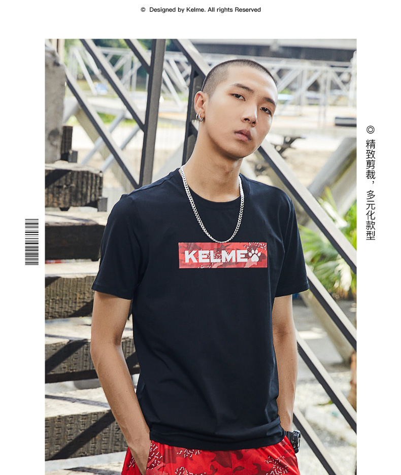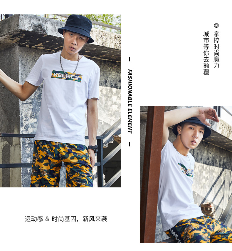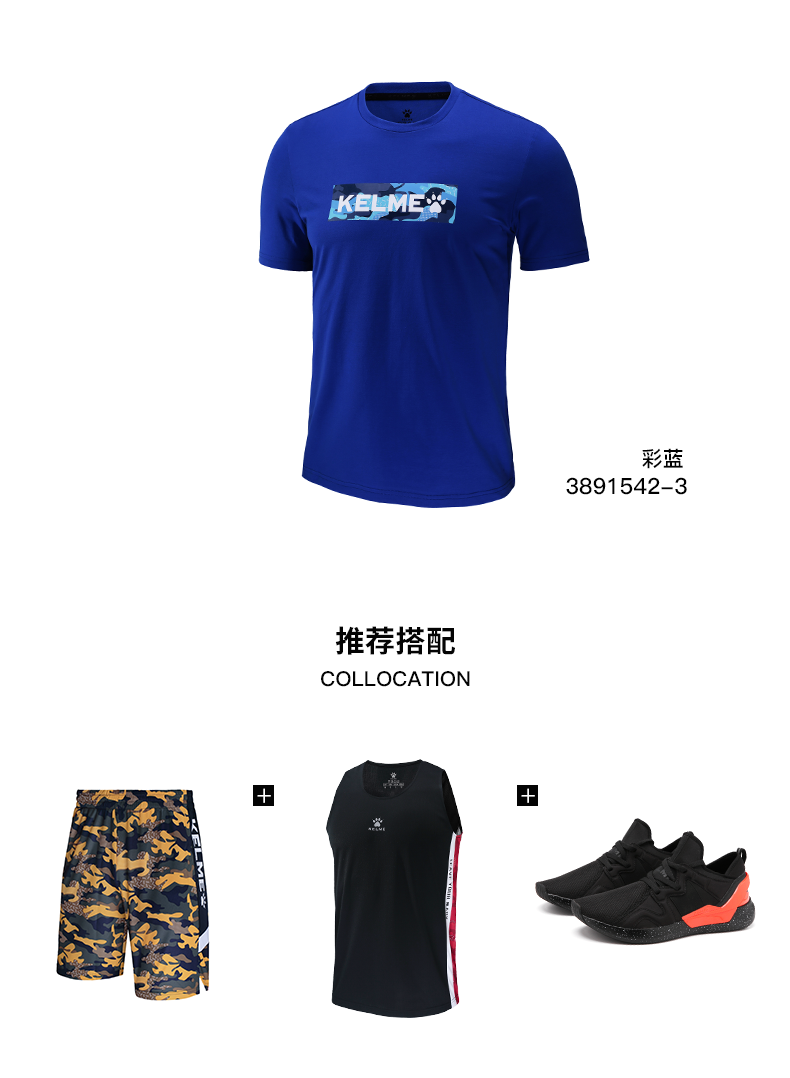 卡尔美短袖T恤男夏季新舒适透气运动休闲圆领纯棉针织上衣