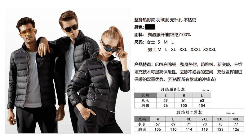 自由基地简约保暖热封羽绒服男女通勤常规版型白鸭绒填充打底外套 NMJ-2018