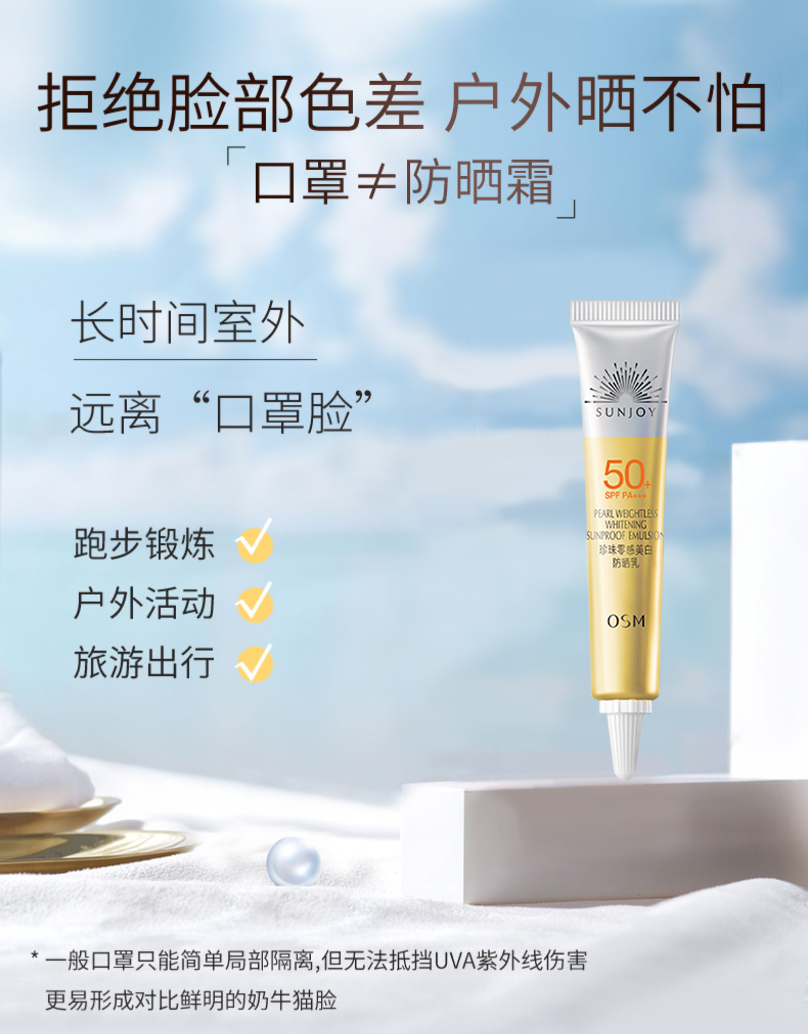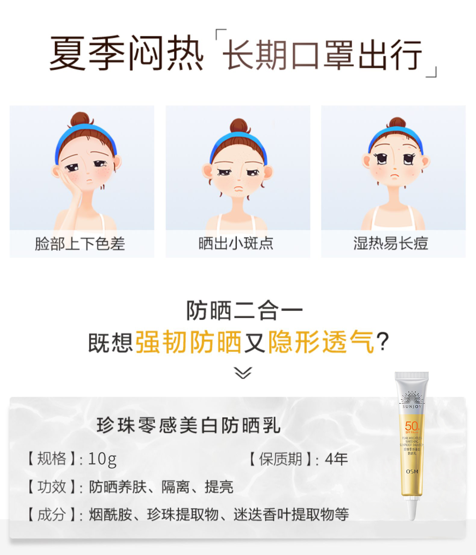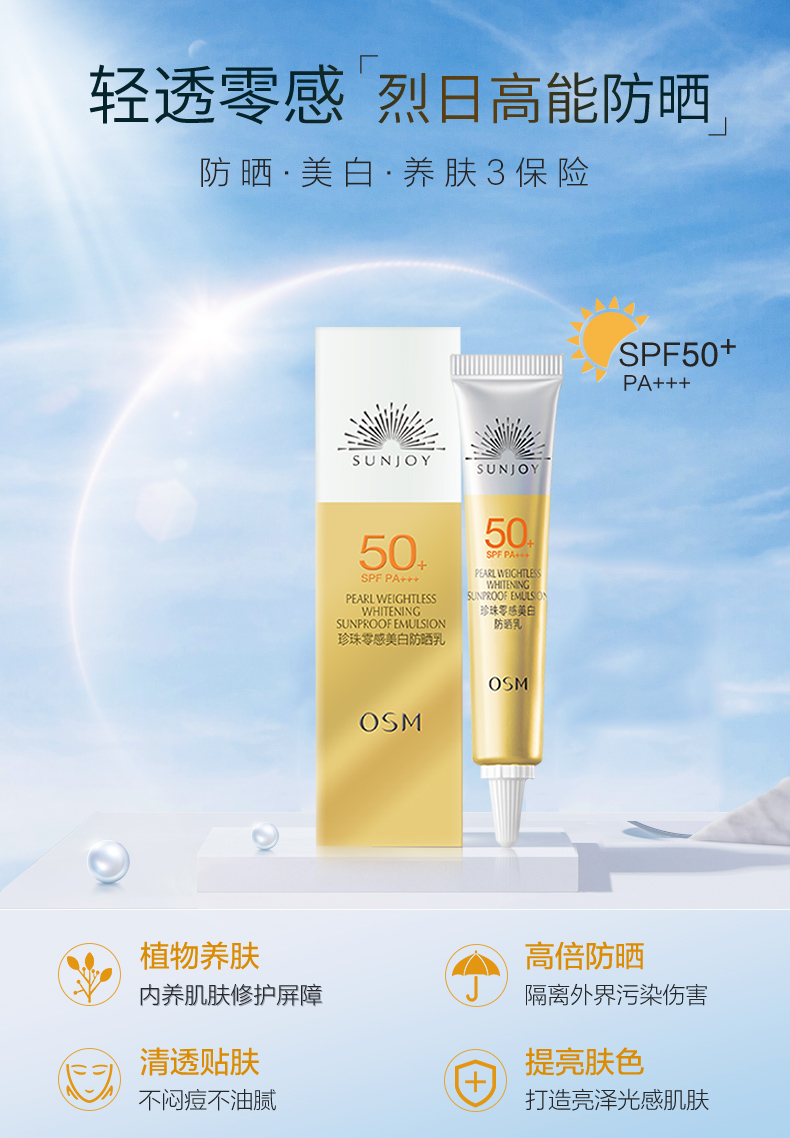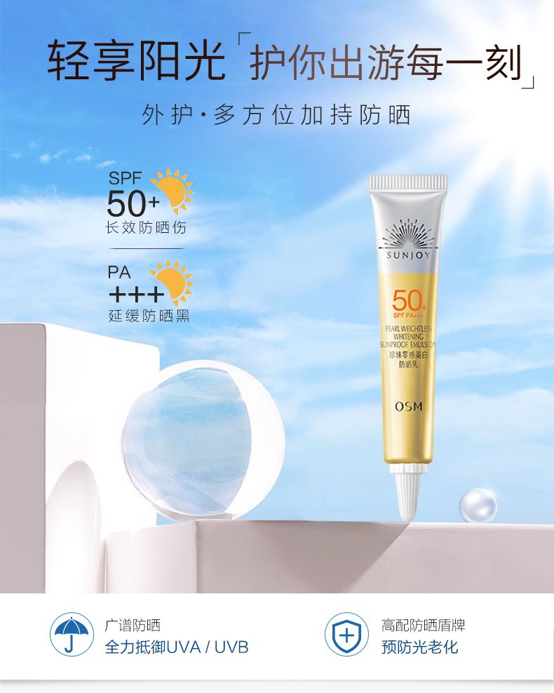 【10g*10支装】OSM/欧诗漫 珍珠零感美白防晒乳(SPF50+ ,PA+++)