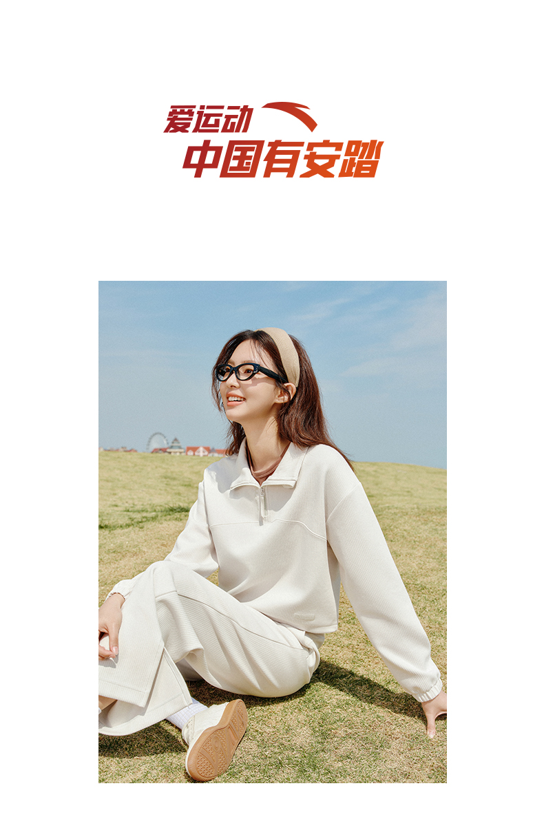 安踏易打理套头卫衣女2025秋季新款半开襟翻领长袖上衣162537706