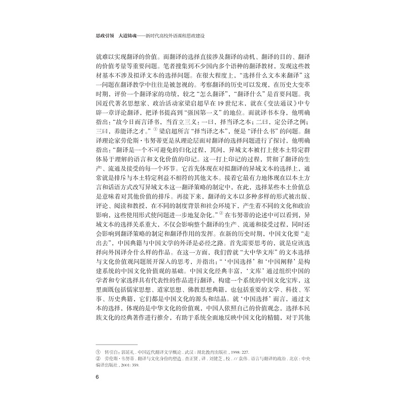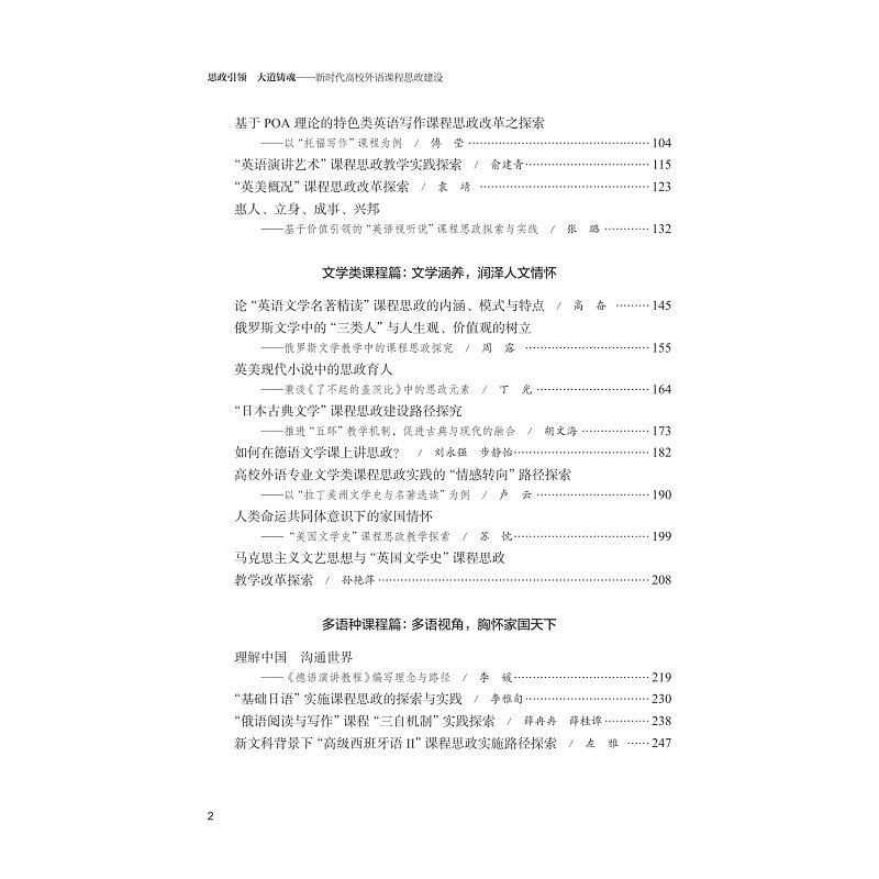 本书以浙江大学外国语学院的省级和校级课程思政建设项目为依托,进一步凝练我校外语专业课程思政建设的经验,展示浙江大学在外语类课程思政建设工作中的阶段性成果。论文集将围绕文学、语言学、翻译学,跨文化与区域国别研究等外语学科 几大方向,总结外语类课程如何围绕立德树人的根本任务,培养心怀国之大者、符合新时代国家战略需求的高质量外语人才的经验。除课程思政外,将汇集文科资深教授许钧、教yu部长 jiang学者刘海涛教授等在内的多位名家的育人讲稿。