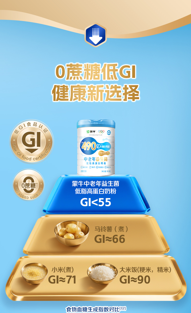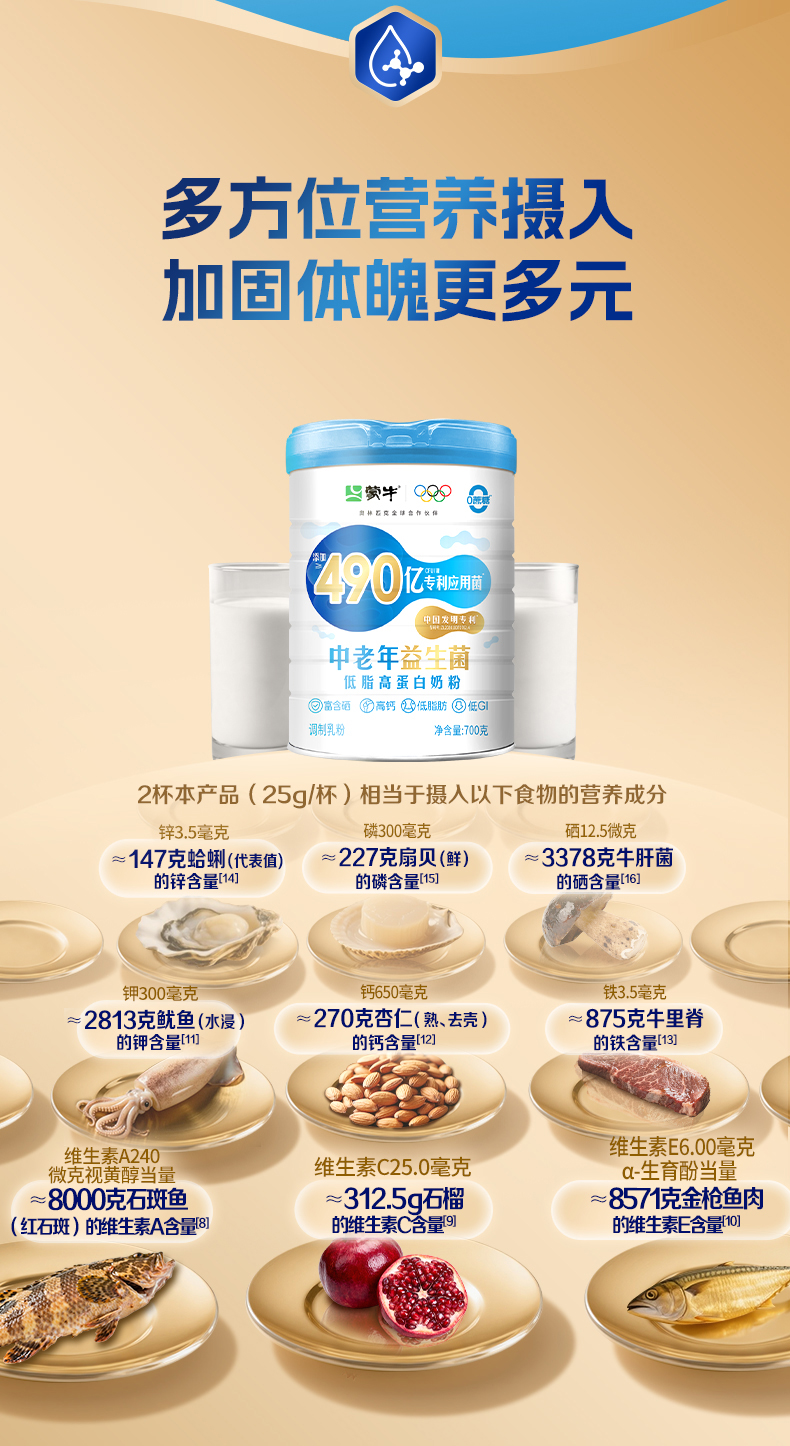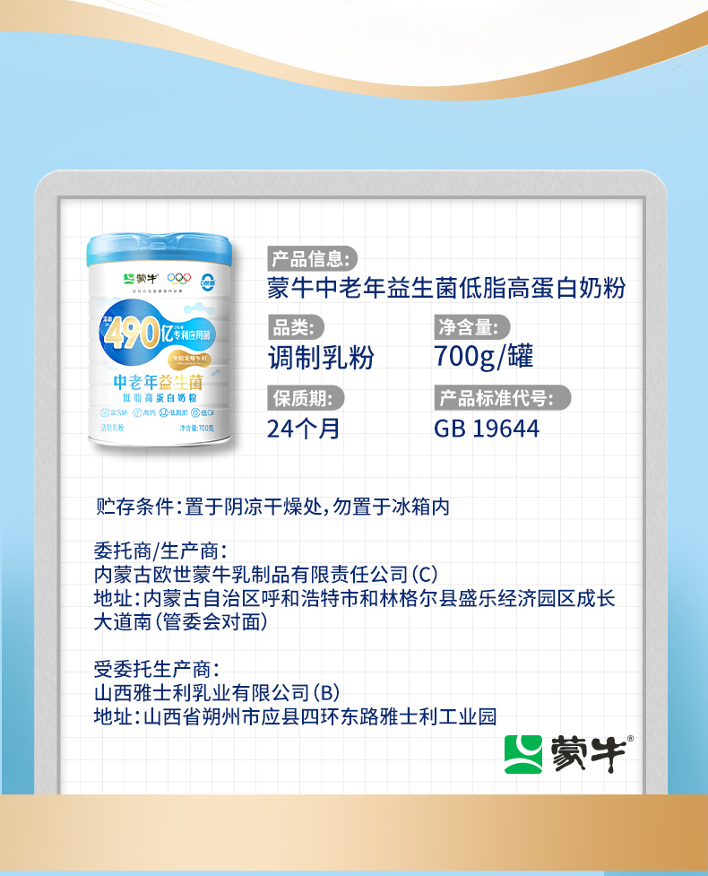 蒙牛中老年益生菌低脂高蛋白奶粉700g