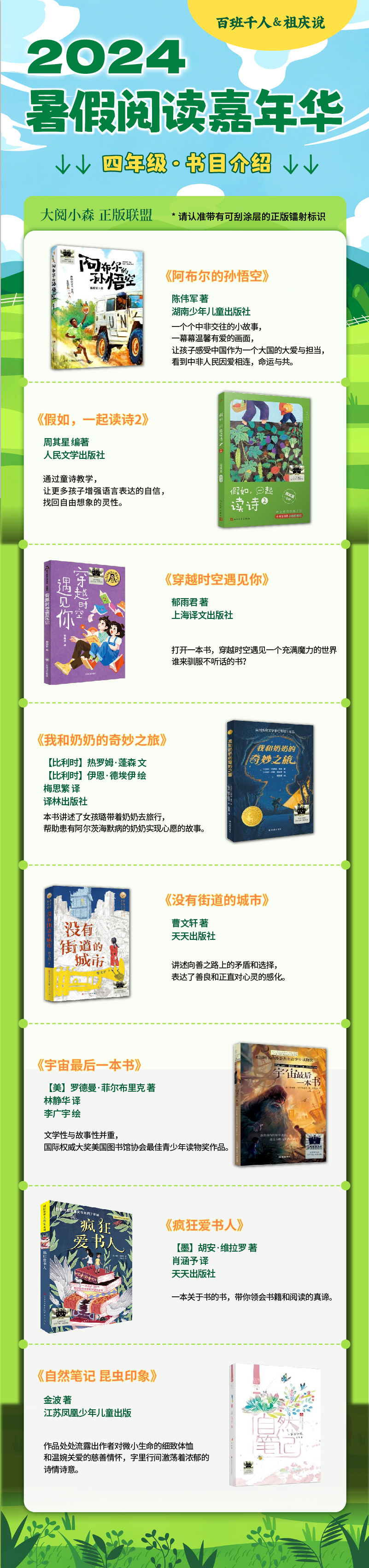 阿布尔的孙悟空 假如一起读诗 穿越时空遇见你 我和奶奶的奇妙之旅 没有街道的城市 宇宙最后一本书 疯狂爱书人 2024年百班千人暑期书目4年级套装8本|祖庆说名师推荐正版现货速发小学生课外阅读
