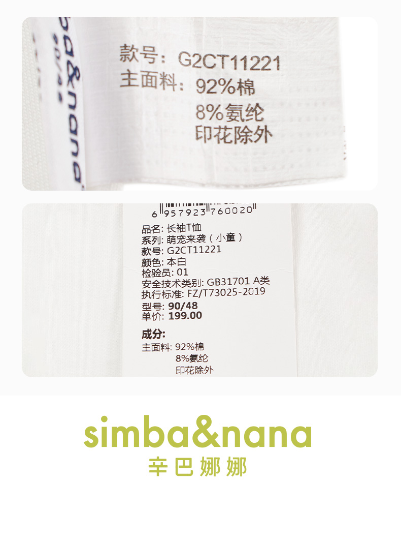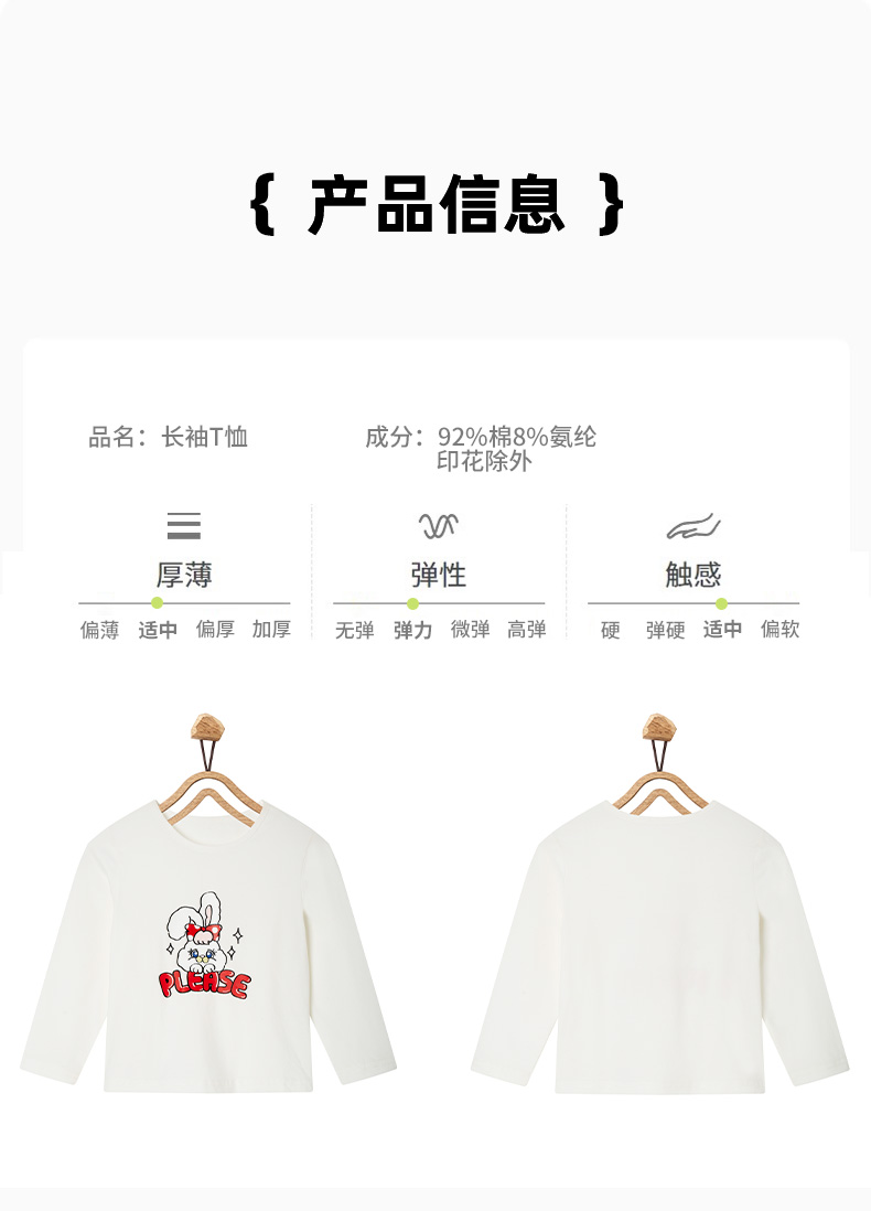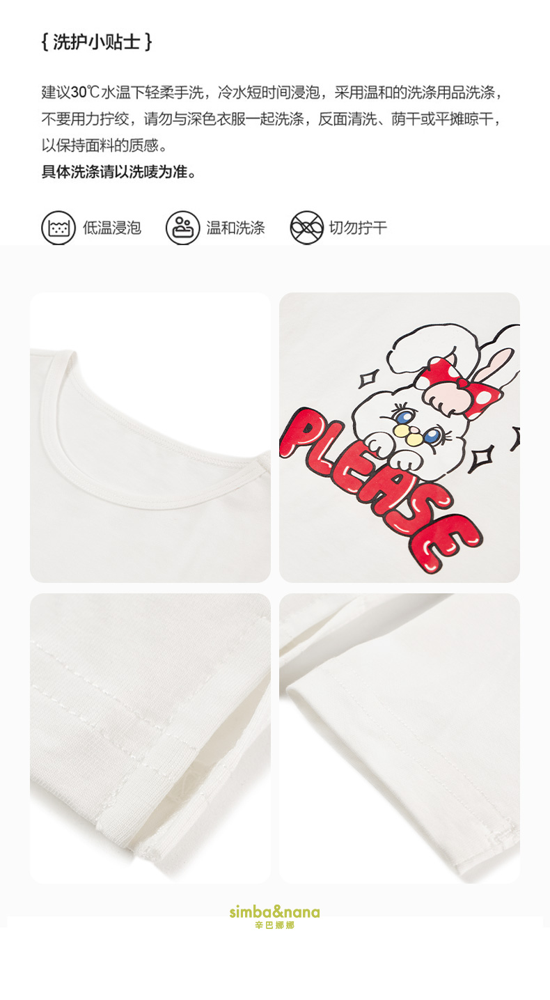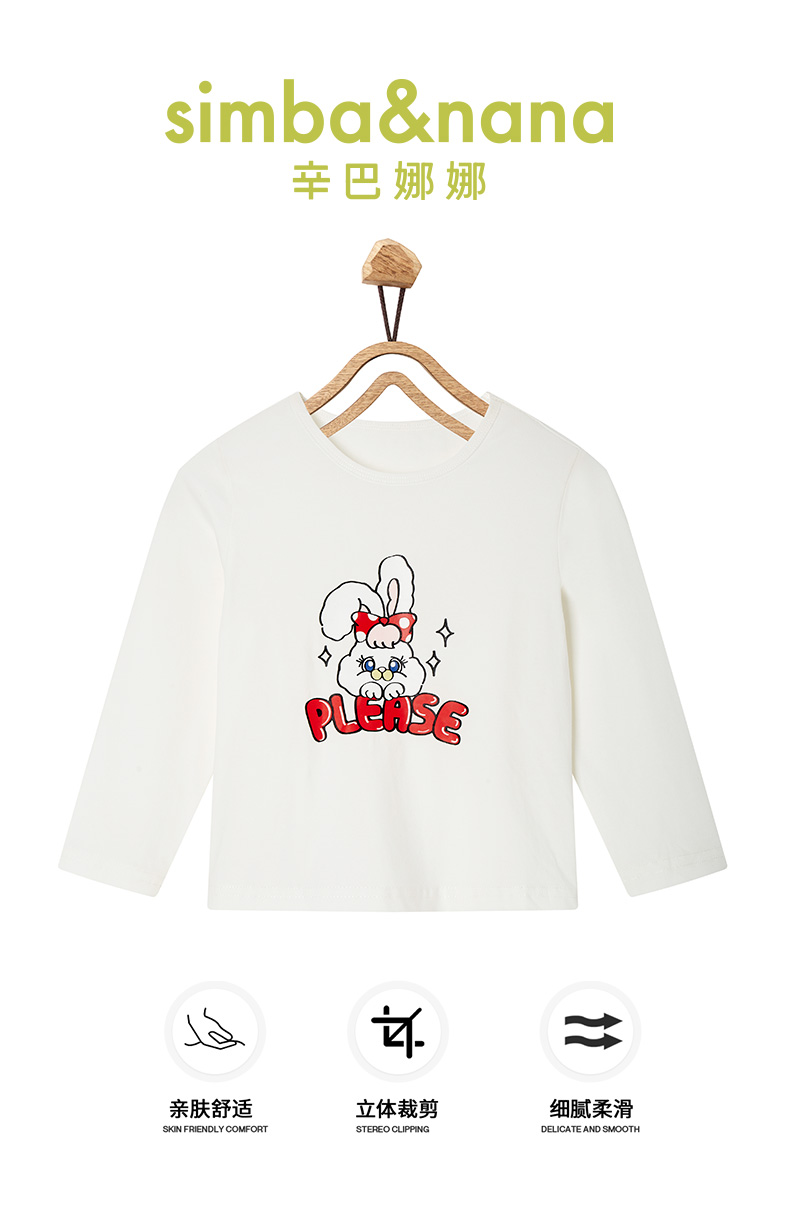 【辛巴娜娜】simbanana儿童长袖T恤春秋季萌兔女童小宝宝打底上衣服
