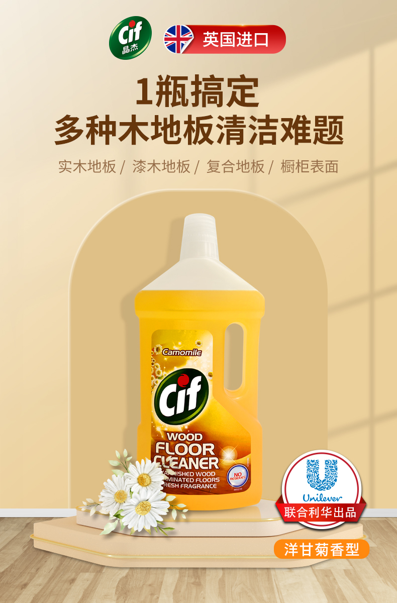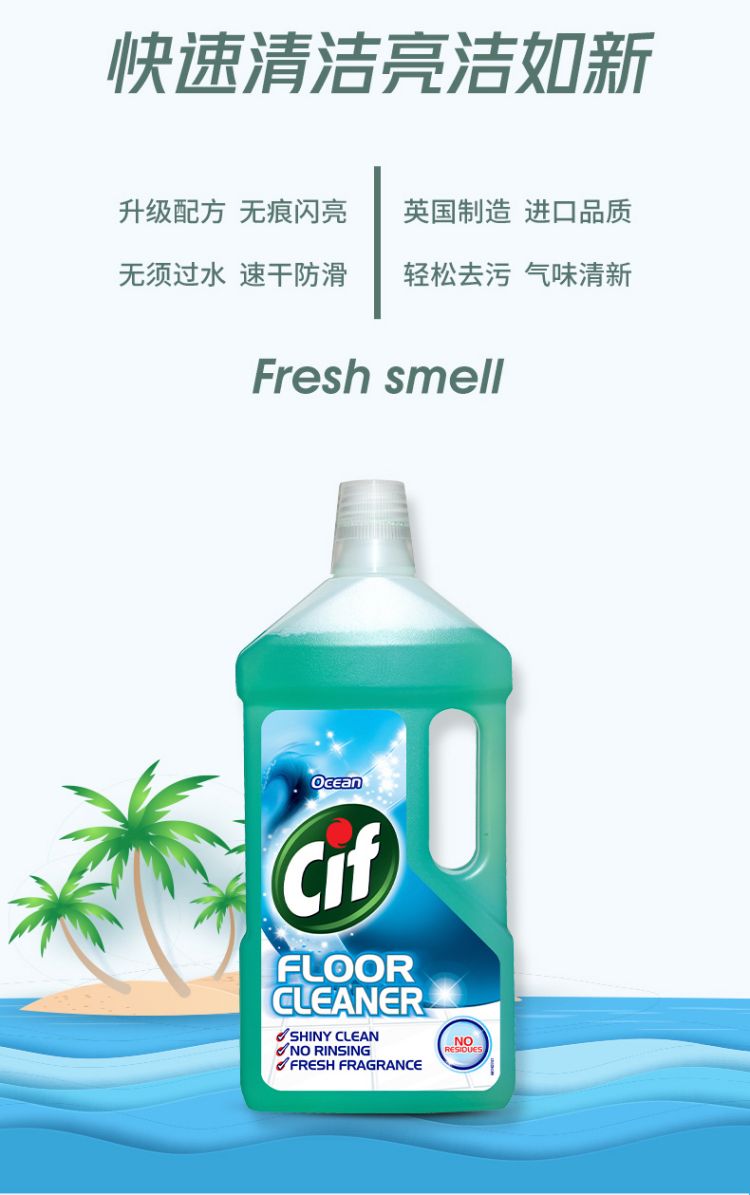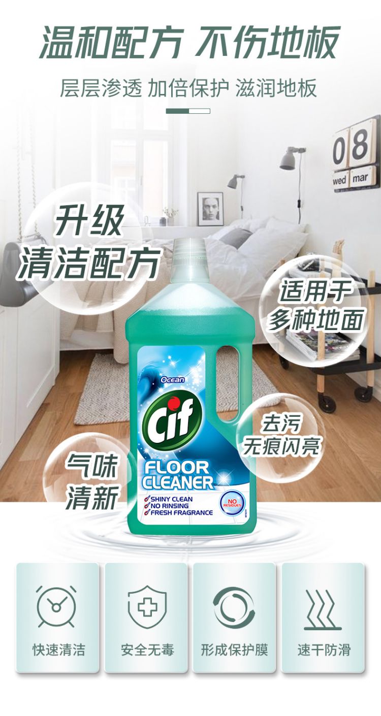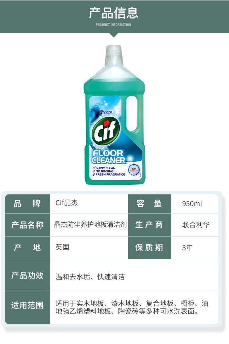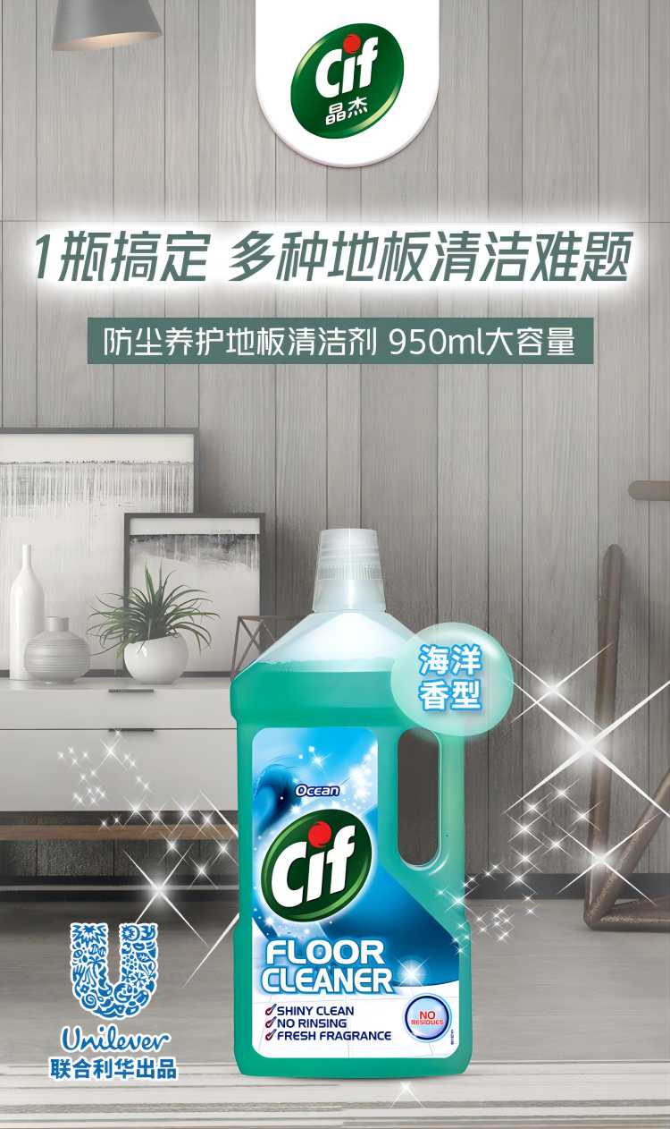 轻松去污 联合利华Cif晶杰防尘养护地板清洁剂(海洋香型950ml)(洋甘菊香型1000ml)