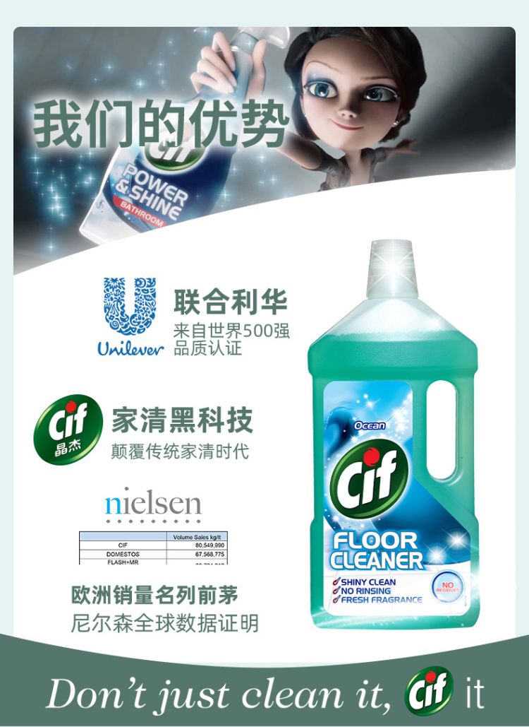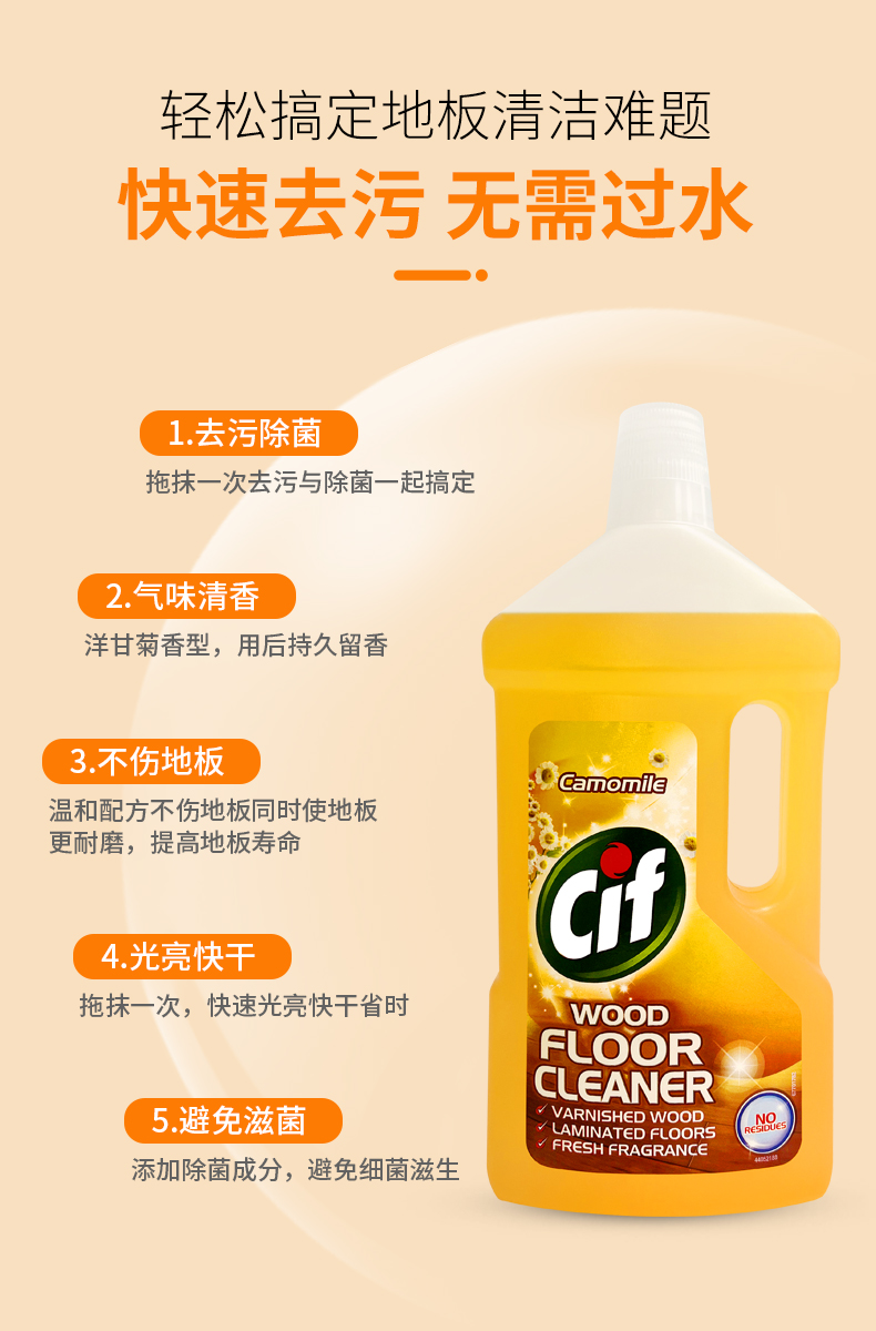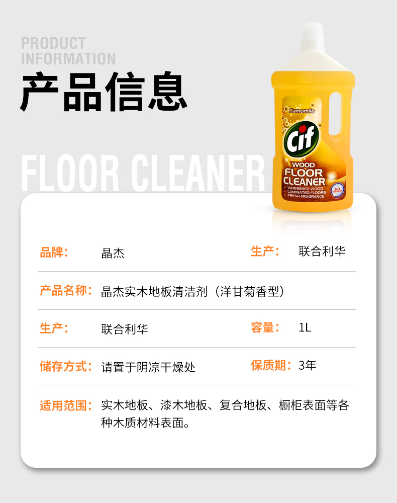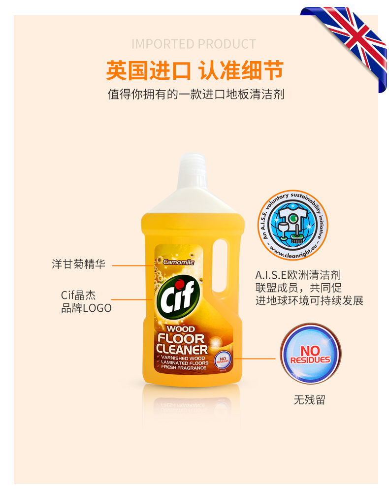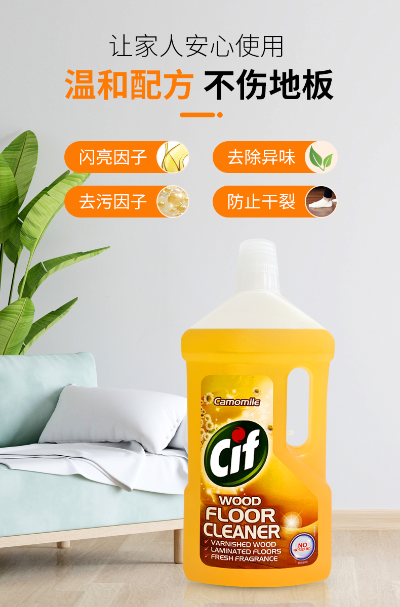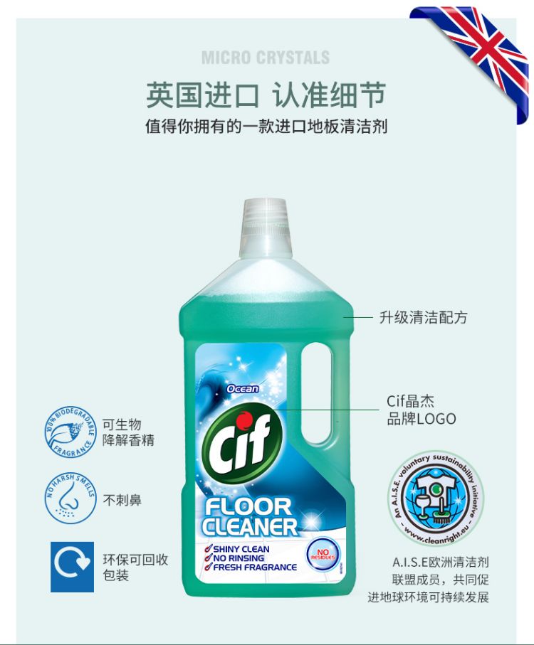 轻松去污 联合利华Cif晶杰防尘养护地板清洁剂(海洋香型950ml)(洋甘菊香型1000ml)