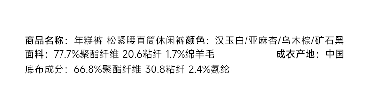年糕裤 松紧腰直筒休闲裤FCF3PAT133