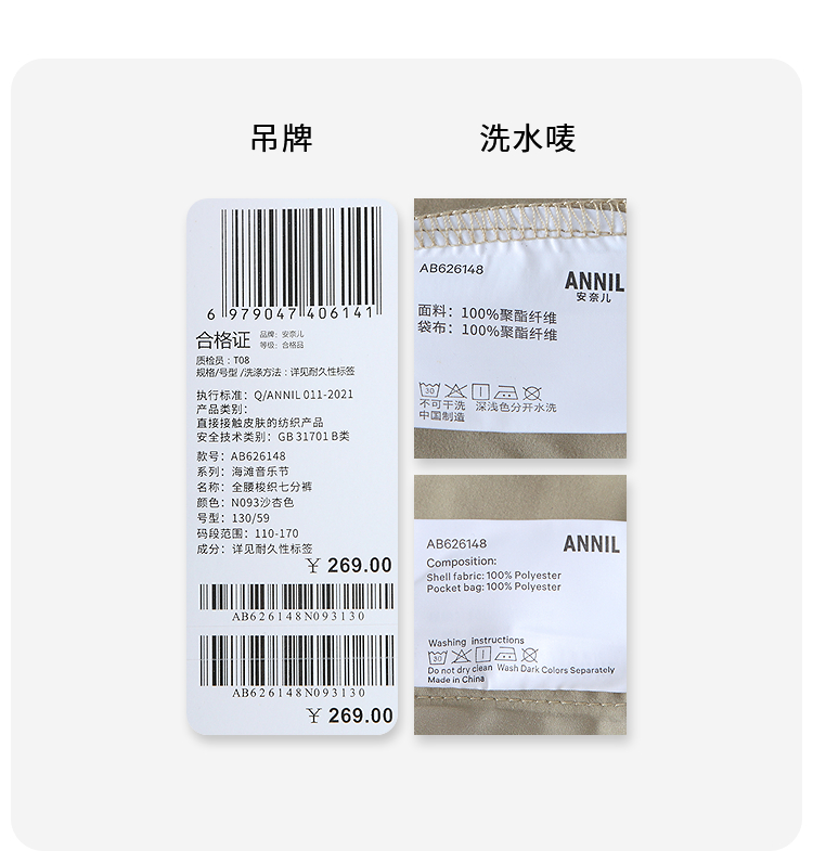 【实体店同款】男童全腰梭织七分裤夏季新款安奈儿童装AB626148