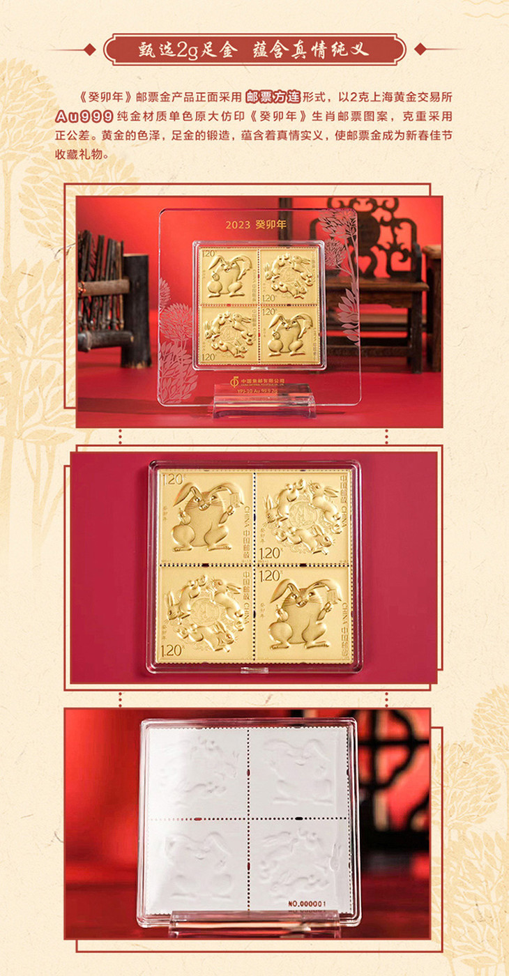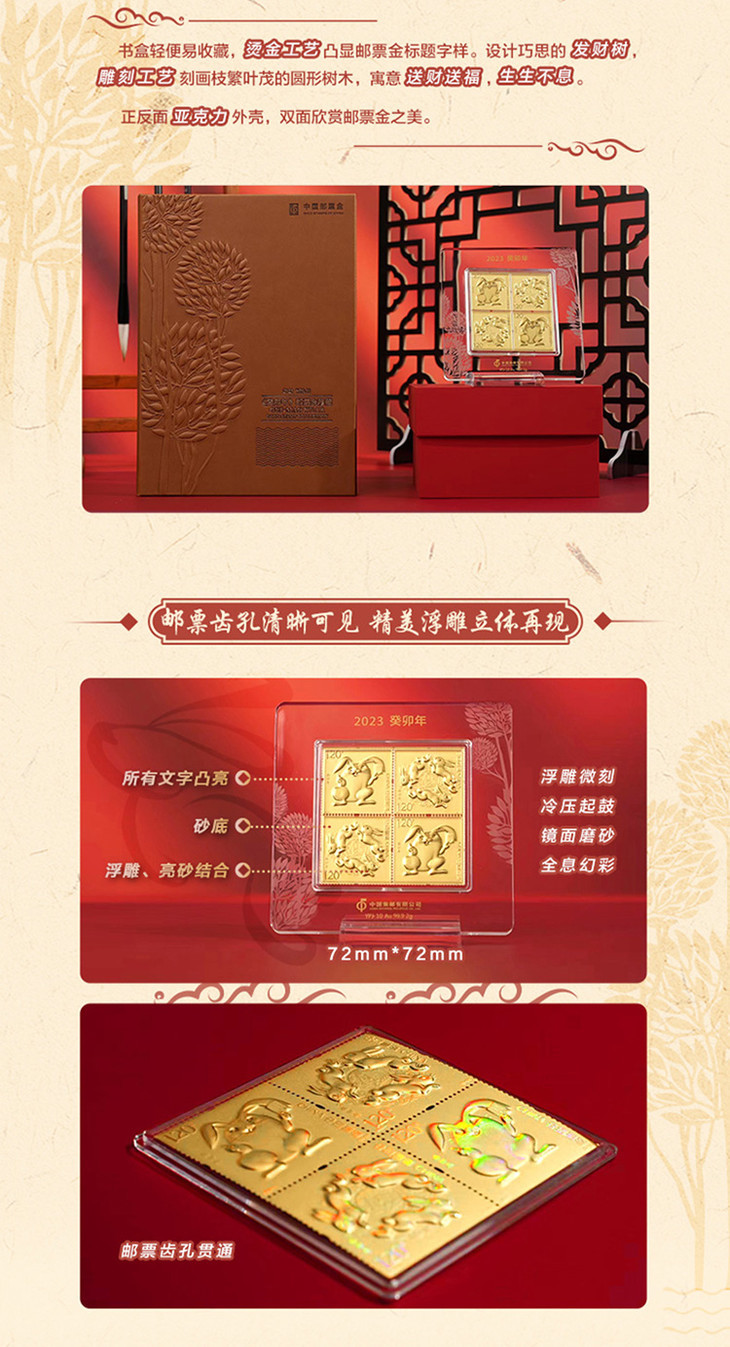 2023兔年邮票金 含纯金2克 带兔小版 精美包装