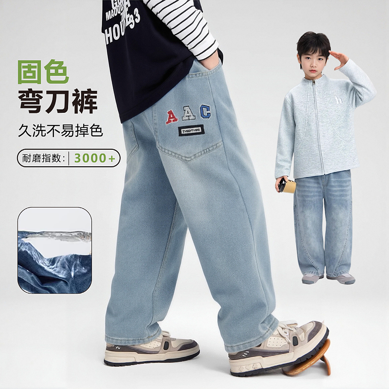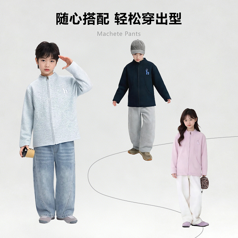 【秒杀】2026春新款 立领拉链外套+牛仔裤两件套 儿童韩版潮牌运动装