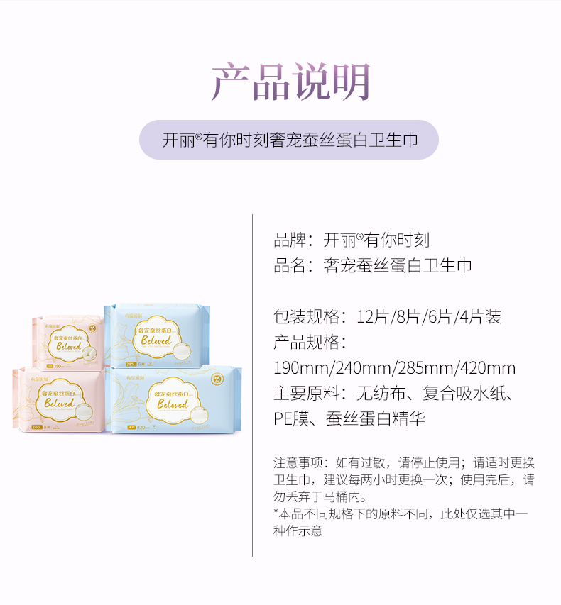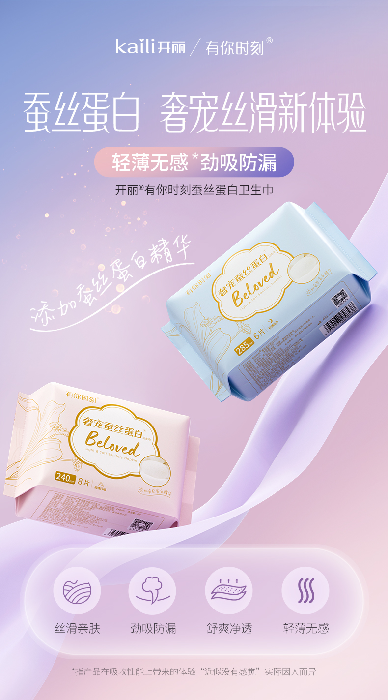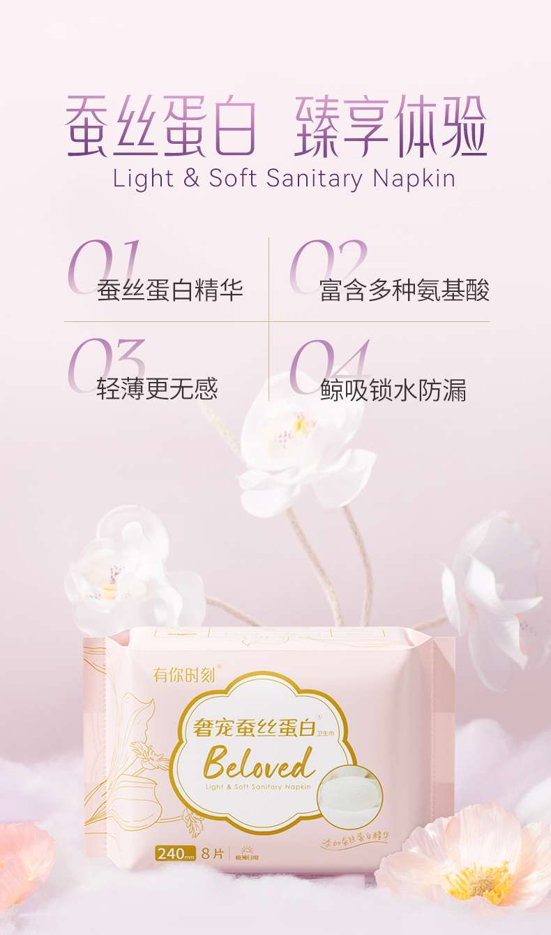 50片|单片独立装卫生巾姨妈有你时刻奢宠蚕丝蛋白 日用240mm
