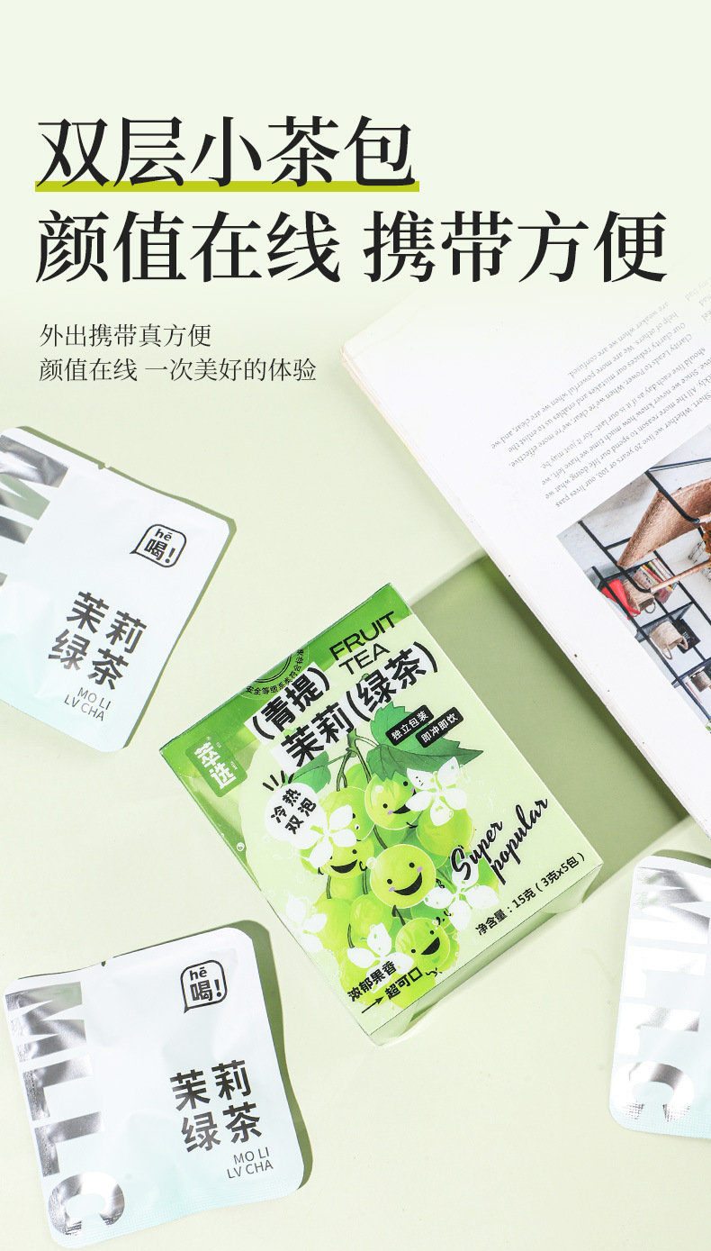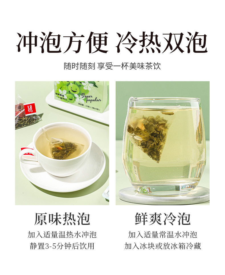 【冷热双泡!小巧便捷】网红青提茉莉绿茶多种口味清香型浓香型独立包装烘干冻干果包装。xb