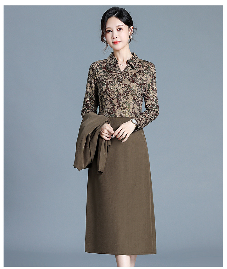 QYM H3315-Y西装外套连衣裙印花假两件长袖连衣裙 商品图1