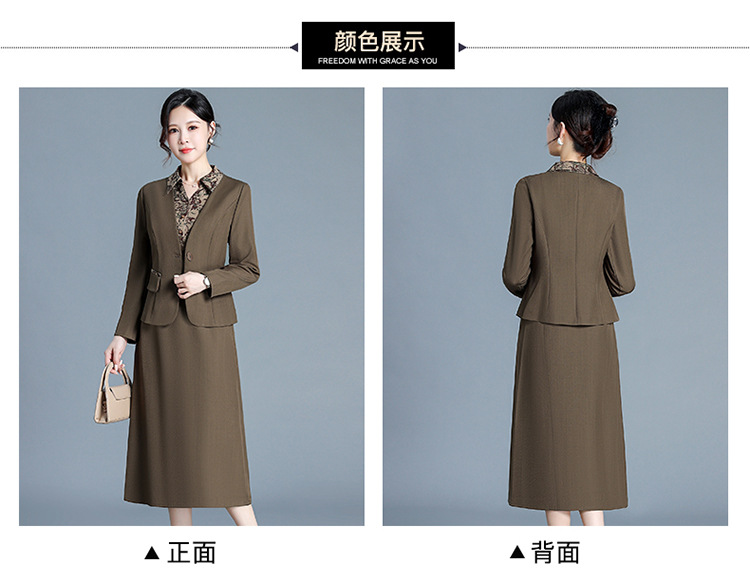 QYM H3315-Y西装外套连衣裙印花假两件长袖连衣裙 商品图2