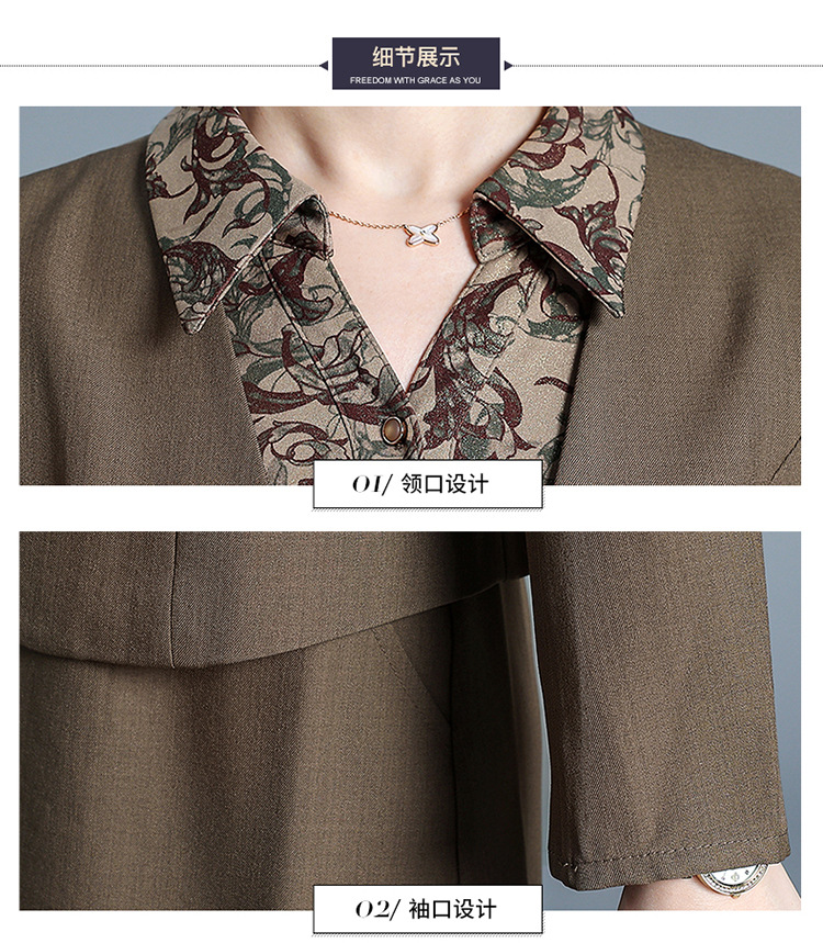 QYM H3315-Y西装外套连衣裙印花假两件长袖连衣裙 商品图4