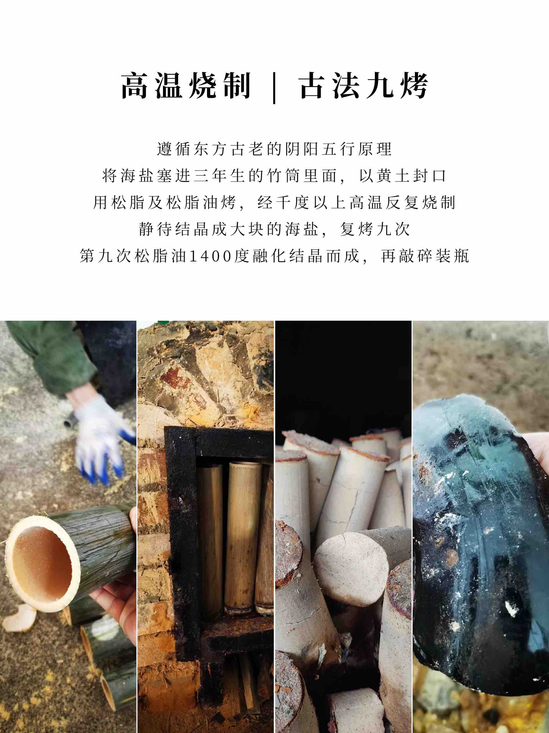 九烤竹盐 | 海盐装在竹筒里烧制,以黄土封口,九次松脂油1400度融化结晶而成