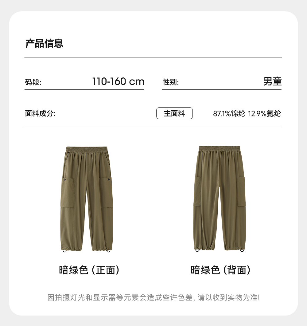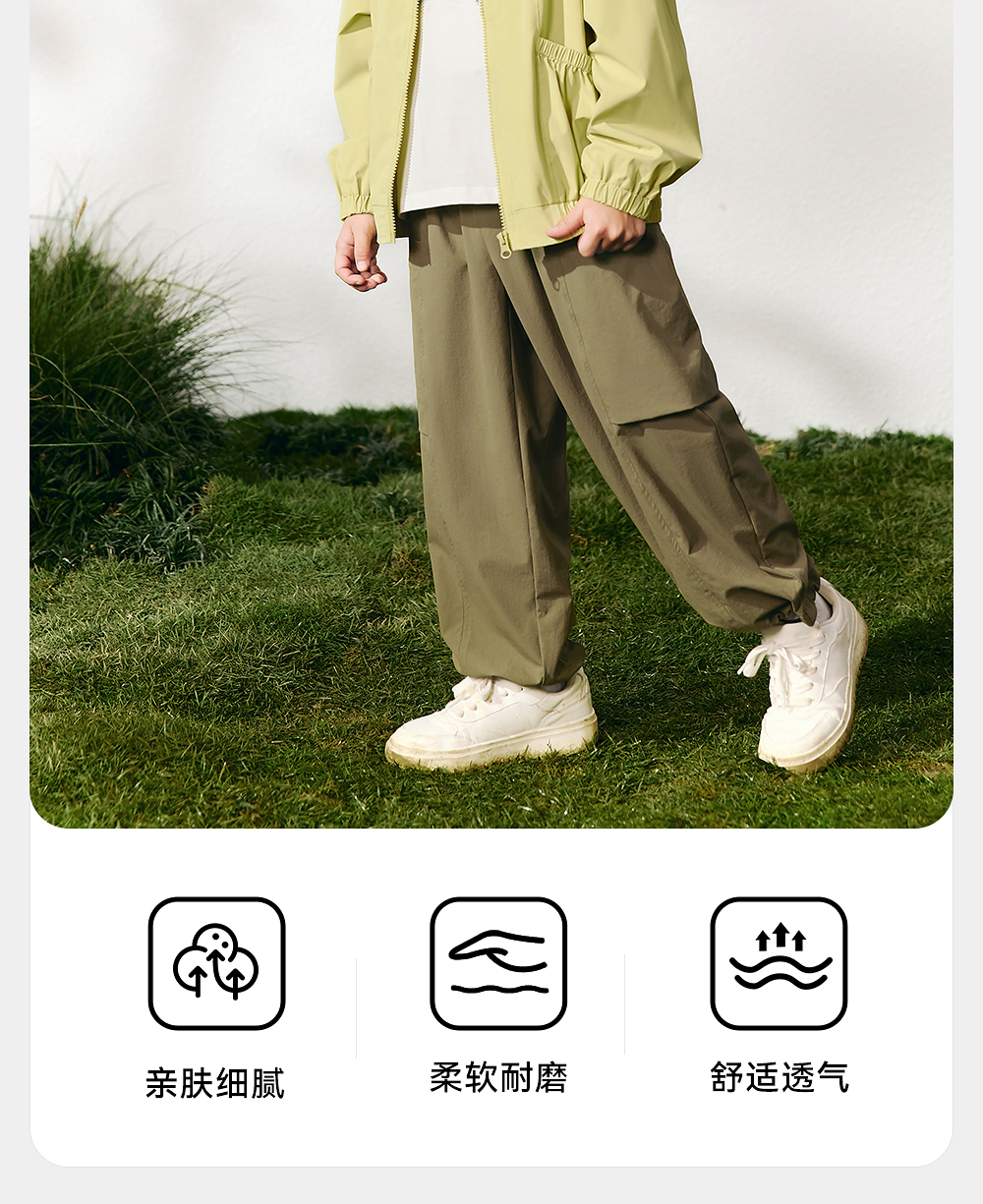 英氏儿童裤子春夏透气男童休闲长裤百搭工装裤中大童裤子2025新款