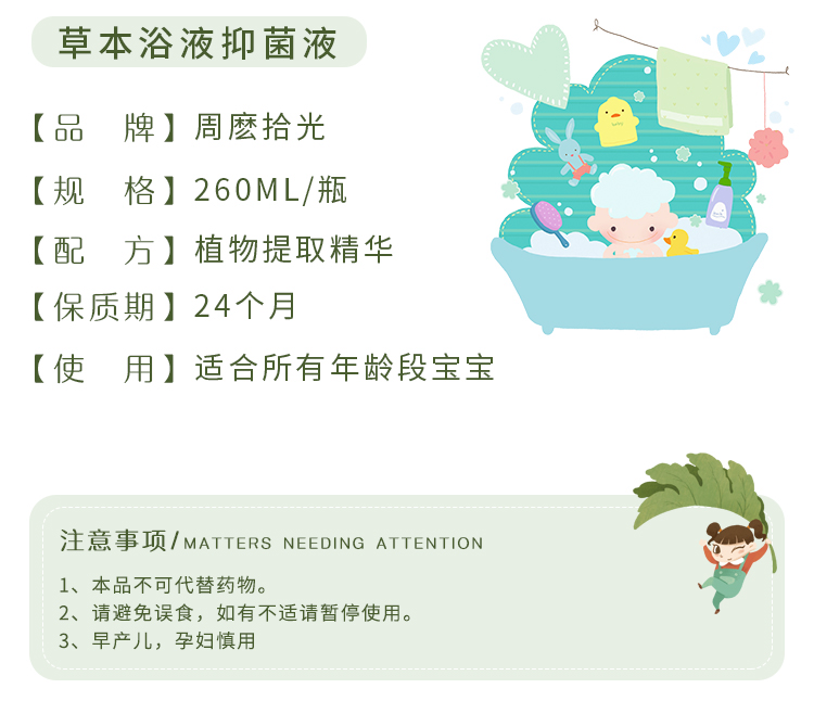 周麽拾光三伏保健药浴婴幼儿天然植物泡澡浴液足浴液儿童260ml