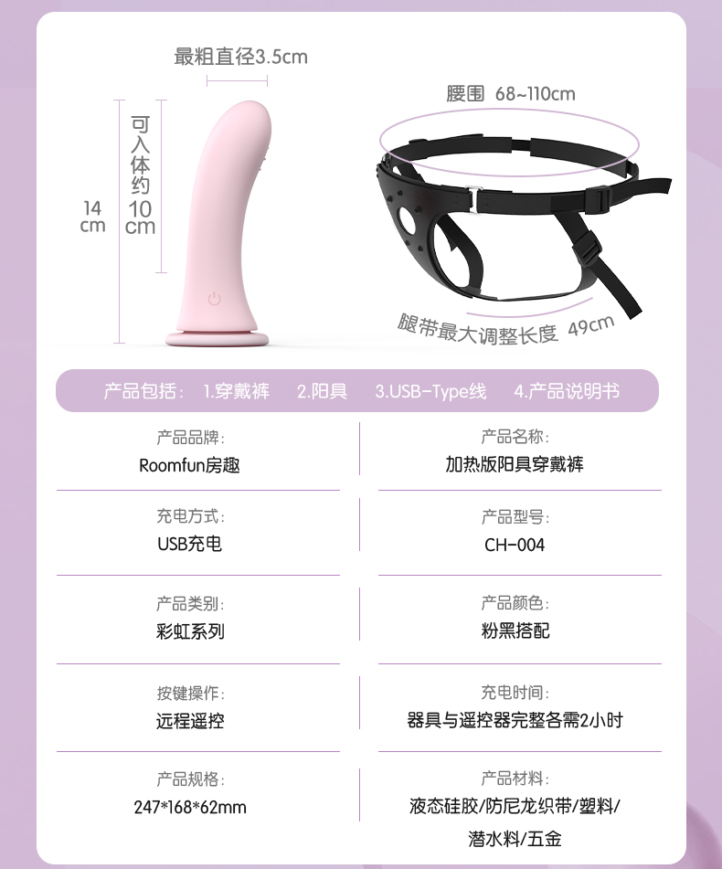 roomfun房趣 3.0女同双头加热遥控穿戴裤解放双手女攻神器液态硅胶