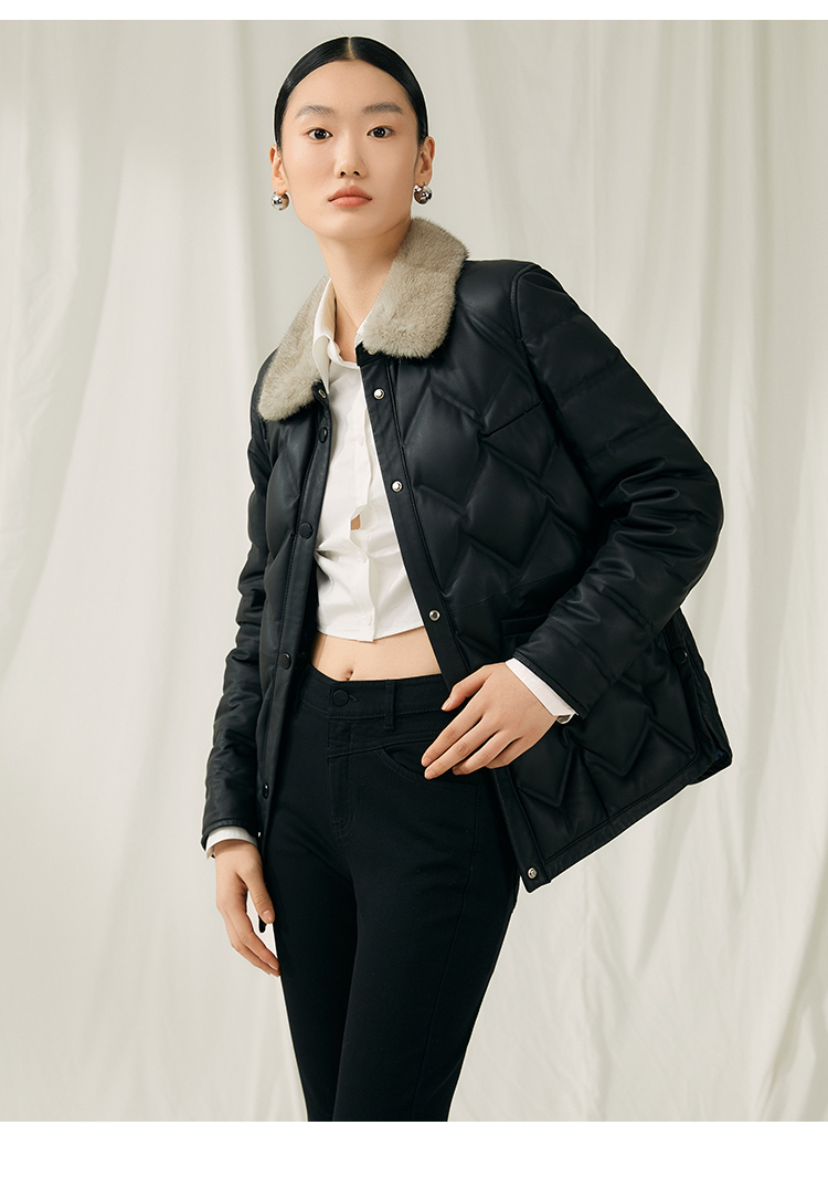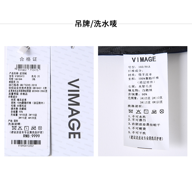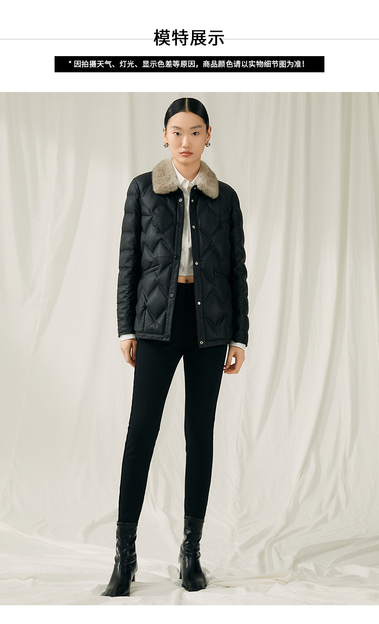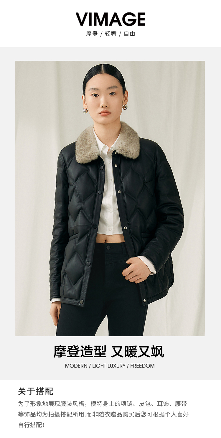 VIMAGE纬漫纪冬季新款皮羽绒服白鹅绒气质修身羽绒服外套V1893413