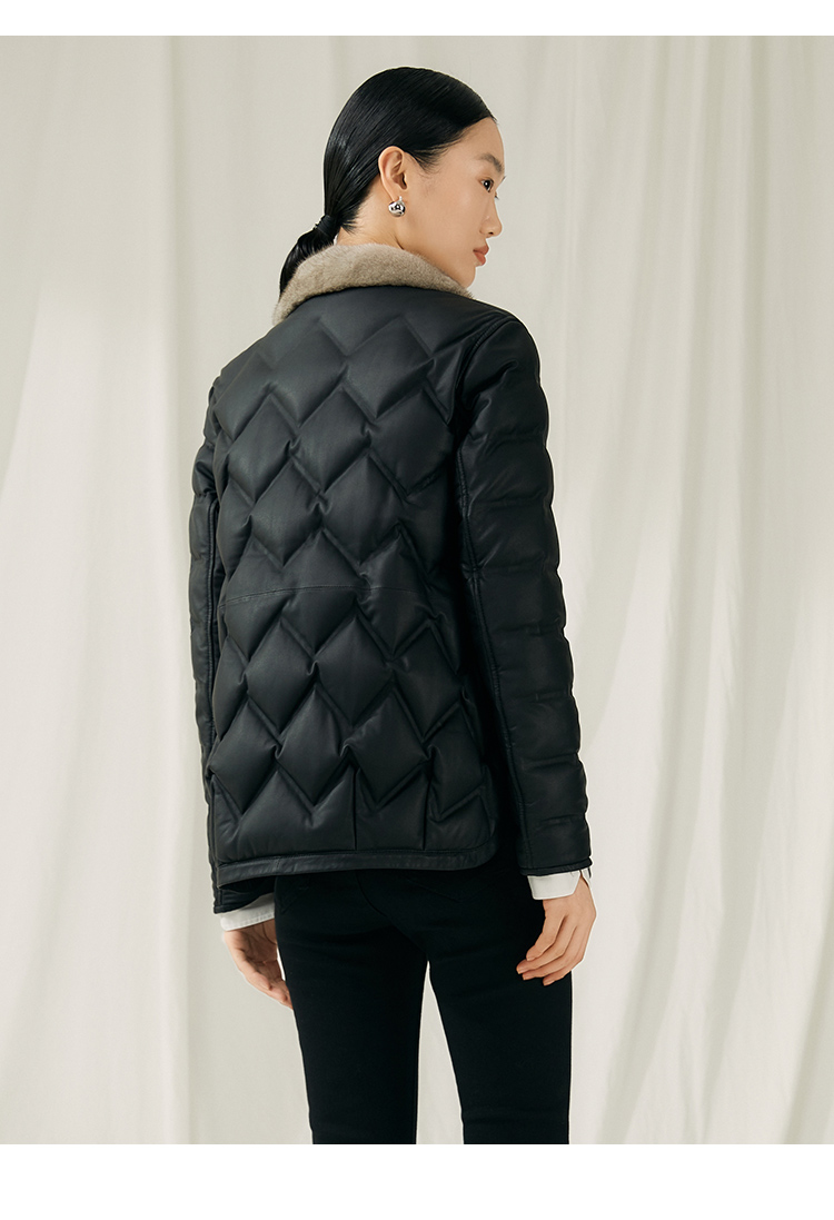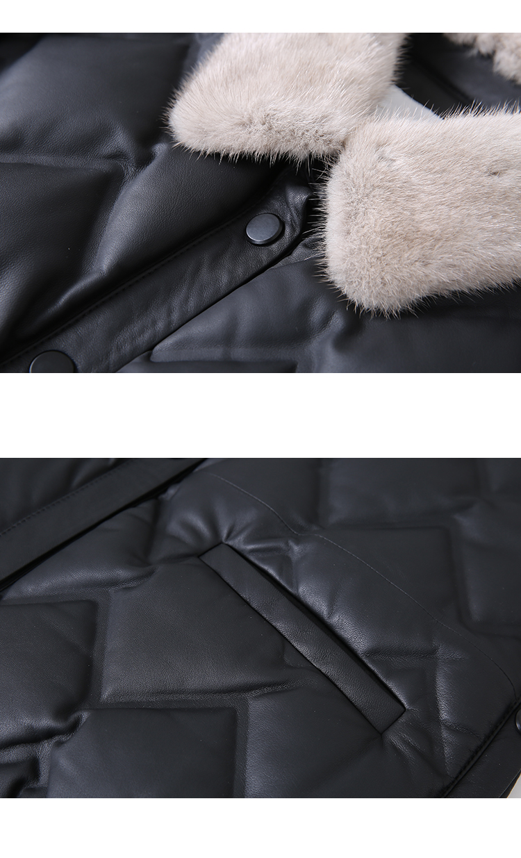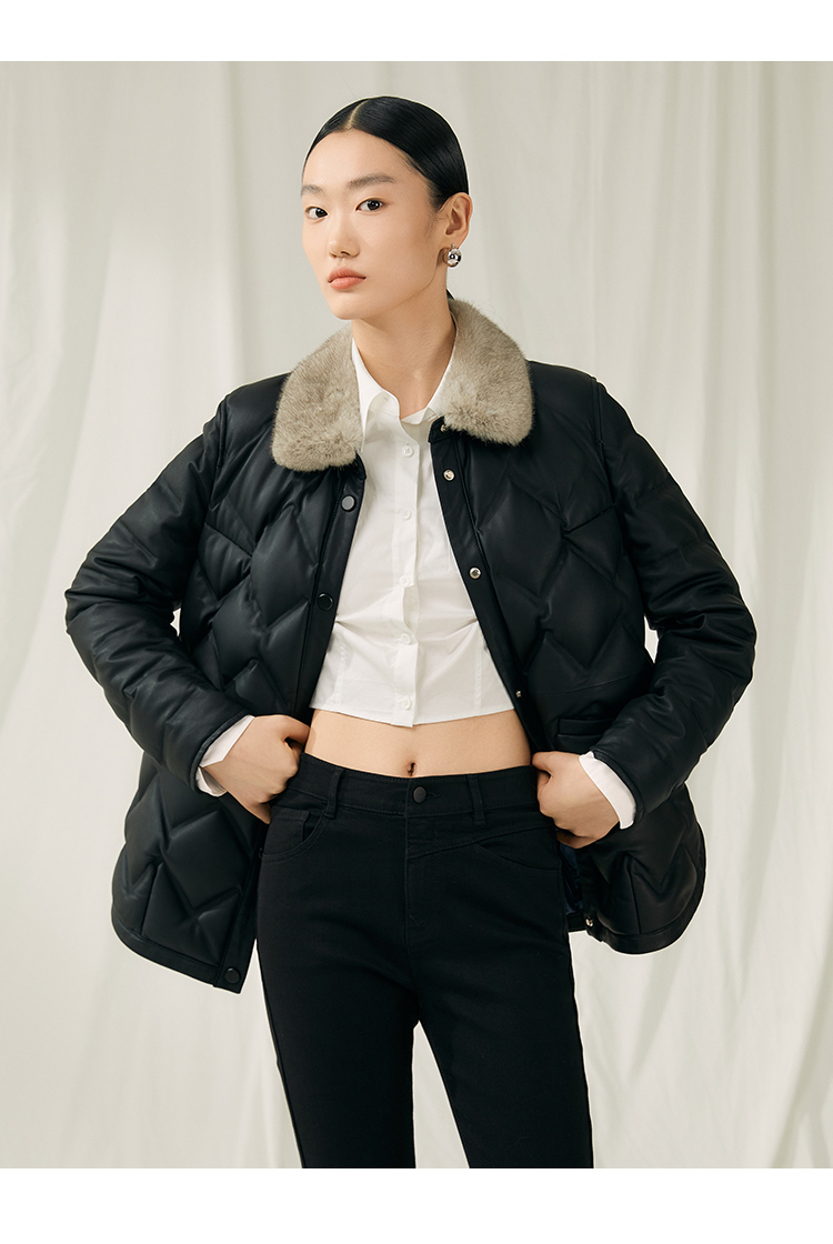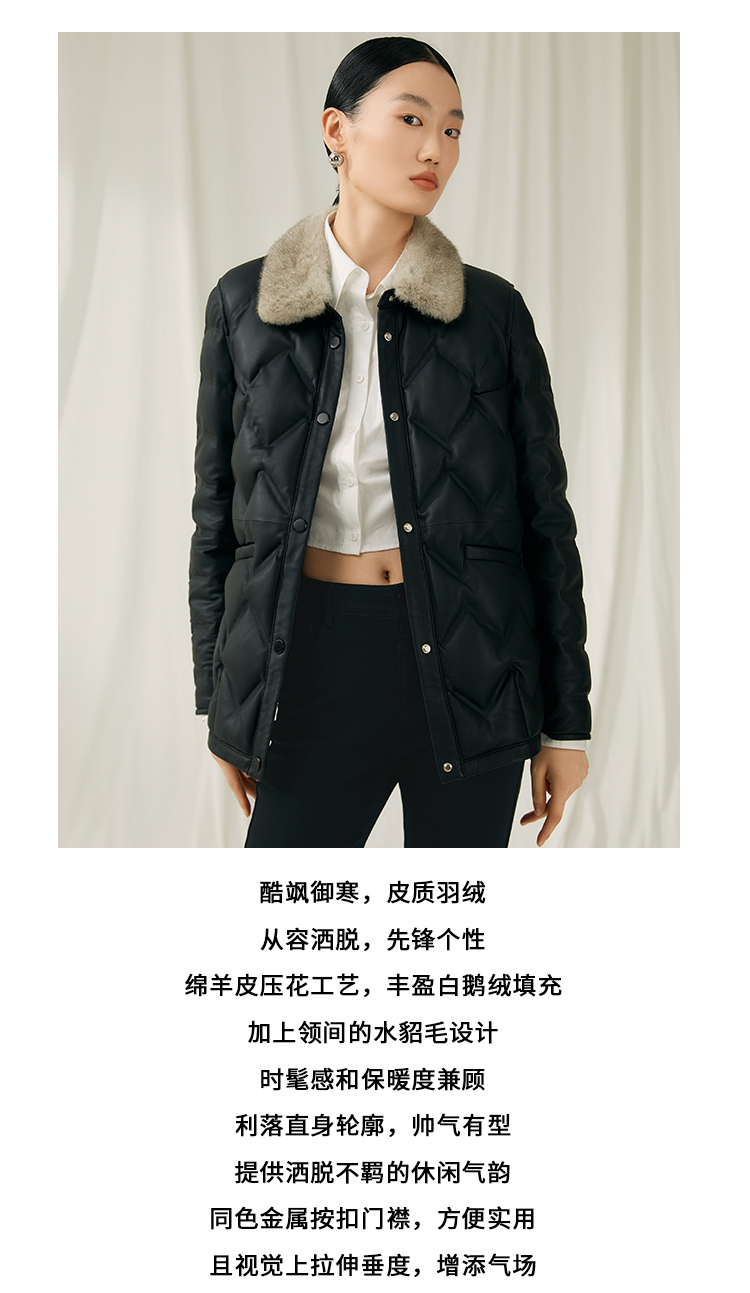 VIMAGE纬漫纪冬季新款皮羽绒服白鹅绒气质修身羽绒服外套V1893413