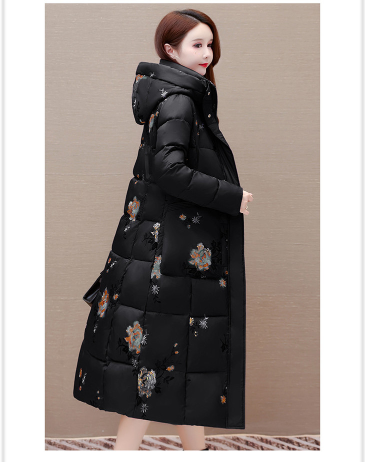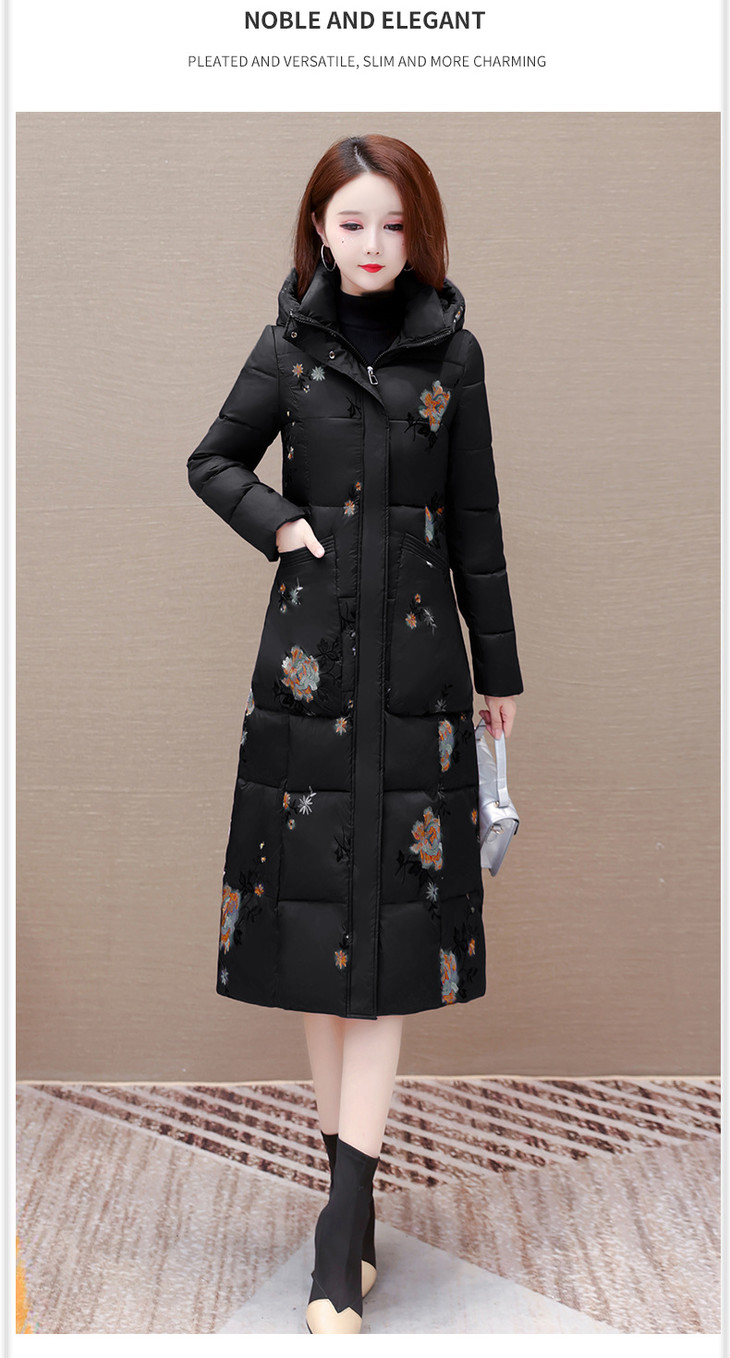 气质绣花长款棉衣冬款时尚修身保暖中老年棉服外套QYM-WPDY-HD23B61