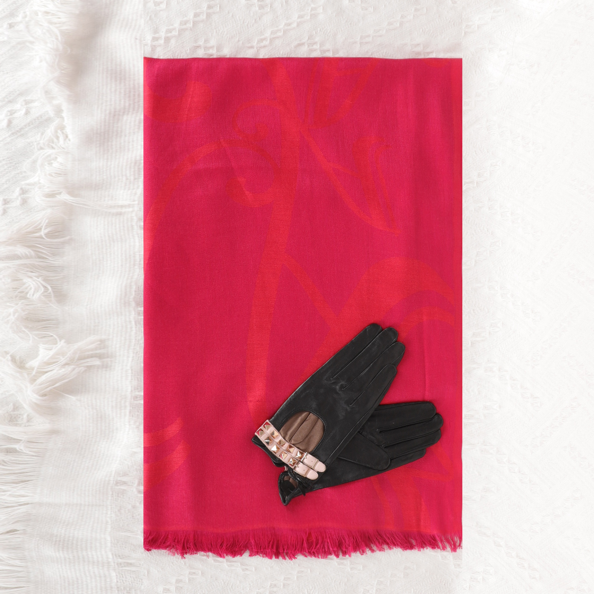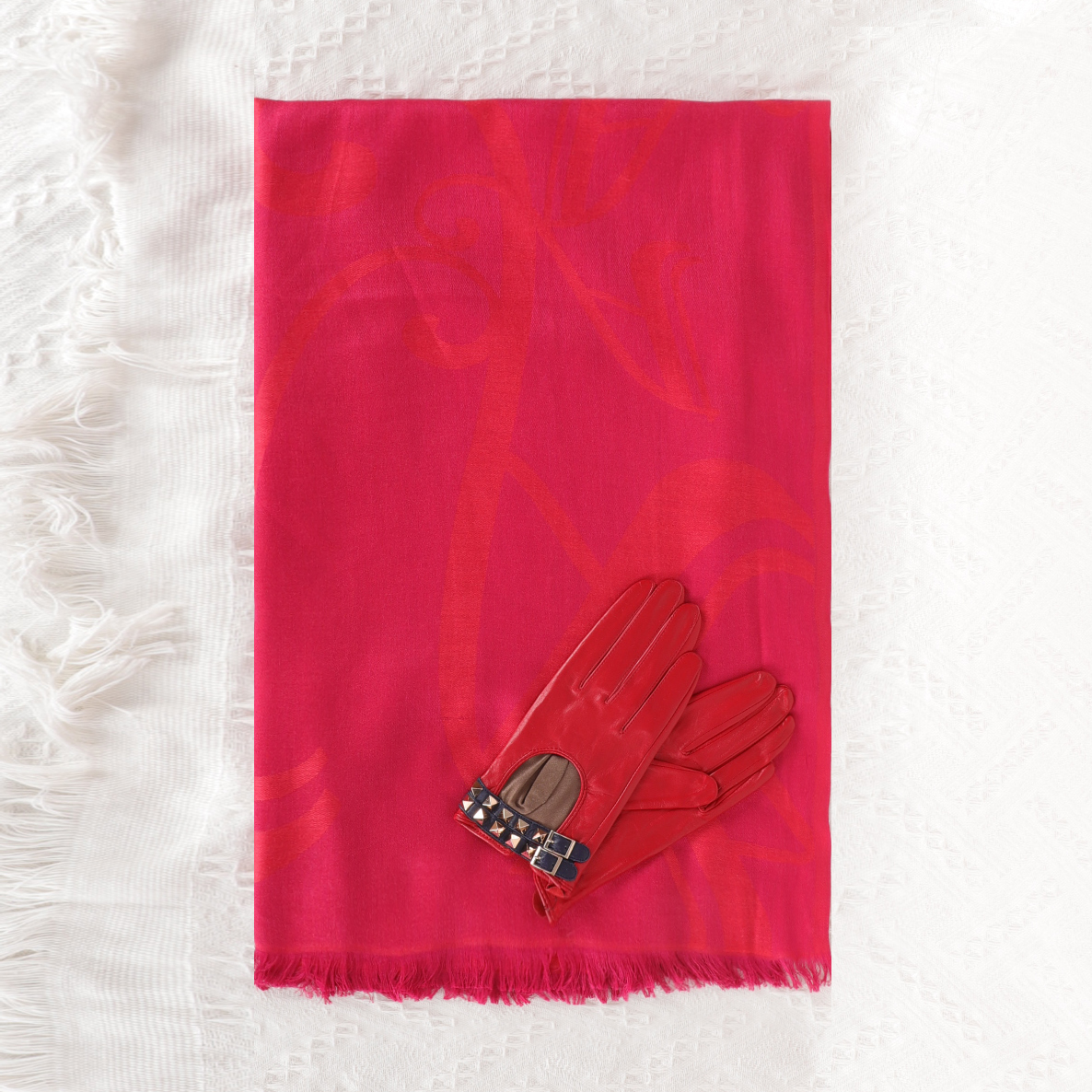 🎉🏮🧣丝棉提花超大围巾🧣&🧤时尚铆钉进口小羊皮手套🧤【赠精美礼品拎袋】🛍️🧤KFW1421006-5A、5L、5W