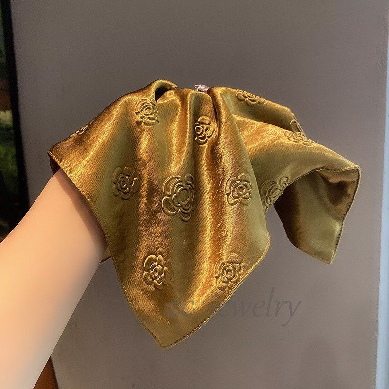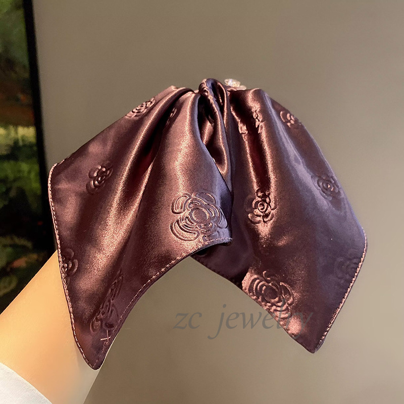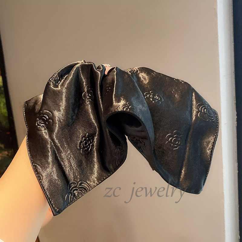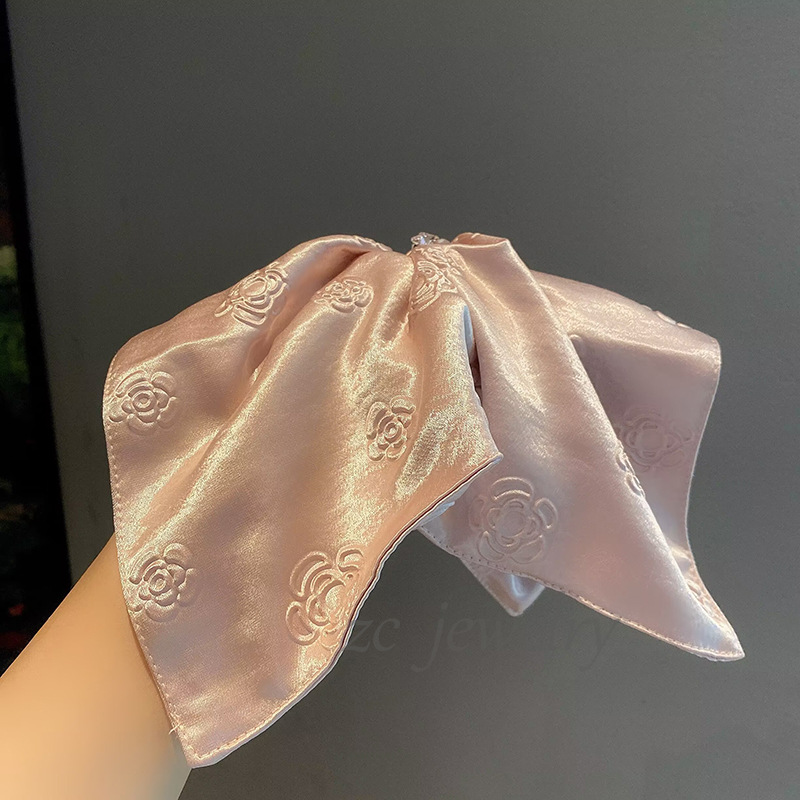 丁摩 高品质法式小香风气质珠光缎山茶花高级发圈时尚方巾肠圈发饰皮筋6ZF-5849