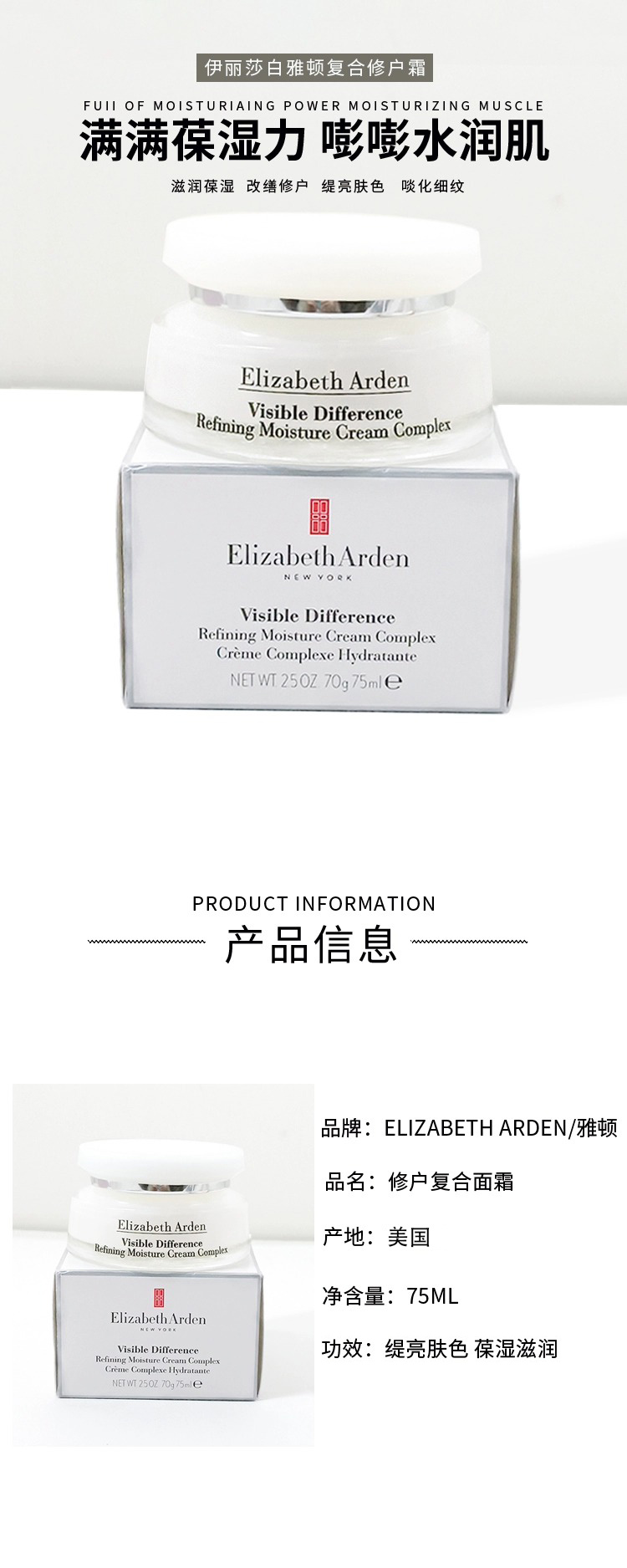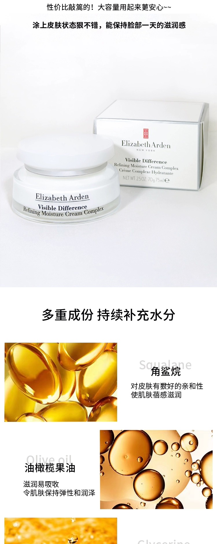 【门店直发】伊丽莎白雅顿面霜21天显效复合霜75ml保湿滋润维稳修护抗老75ml