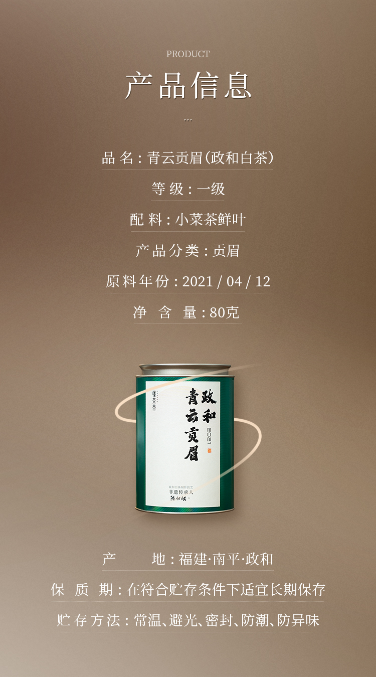 懂茶帝大师茶青云贡眉2021年政和白茶非遗老师陈仕斌花香贡眉80g