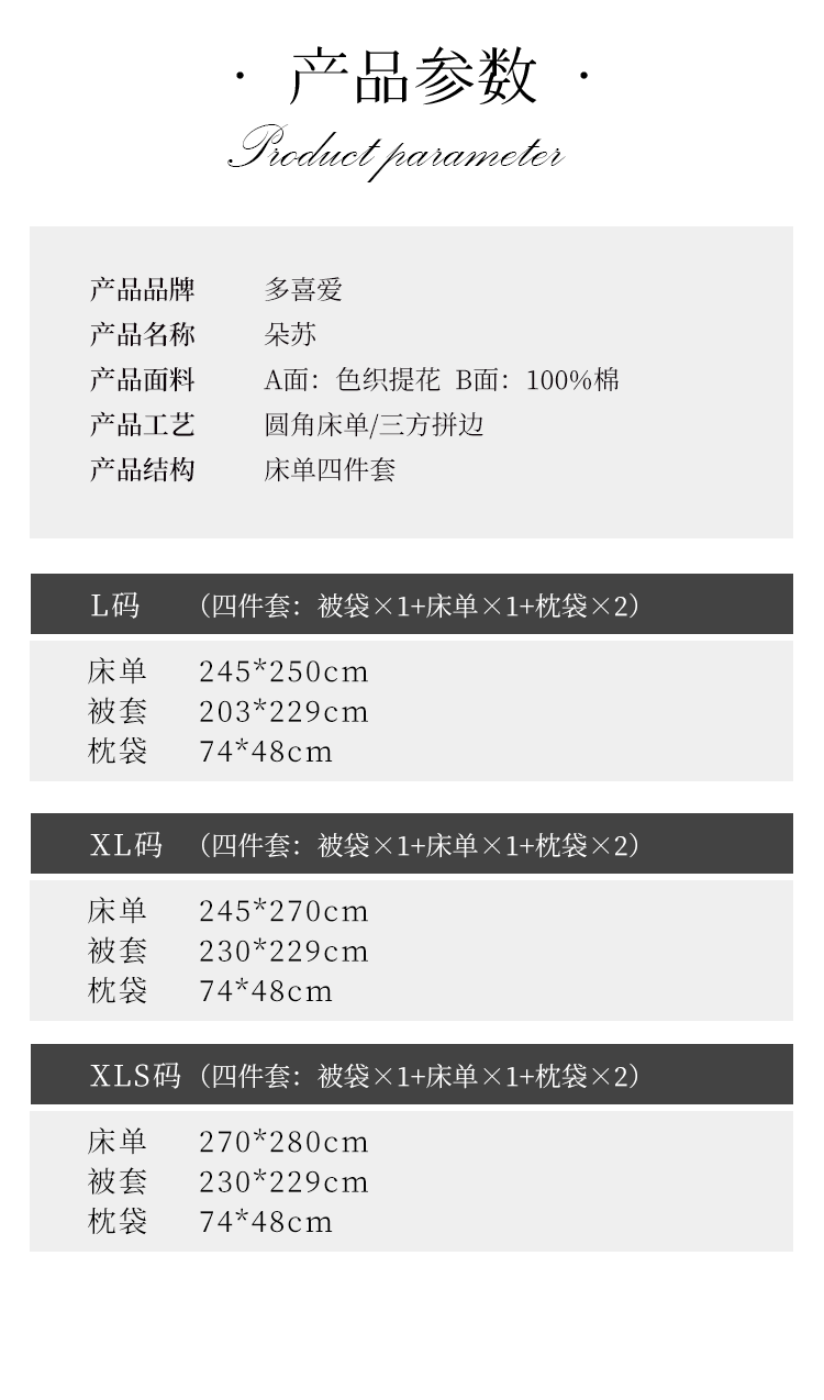多喜爱 60S全棉色织提花四件套·朵苏 【60S长绒棉】【色织提花】【三方拼边工艺】【宽边枕套】【礼箱包装】轻奢品质 柔润丝光 高支高密 花型立体 双面设计