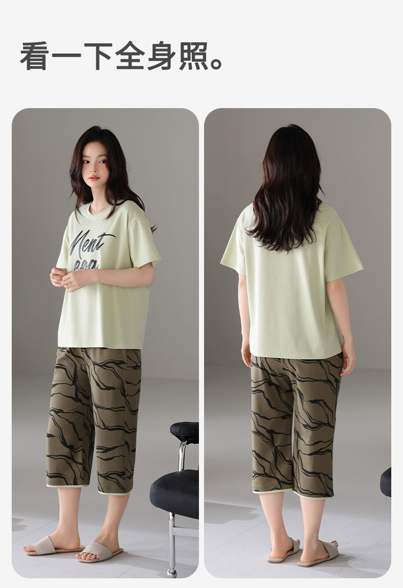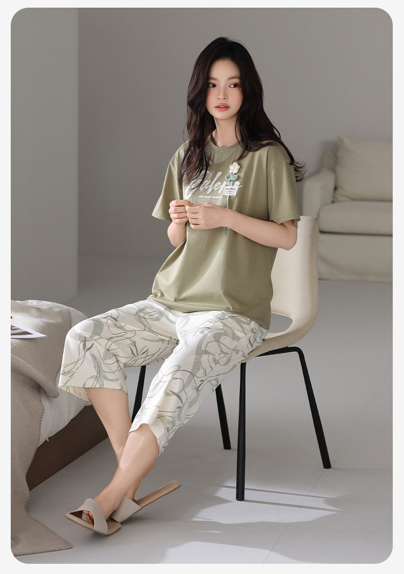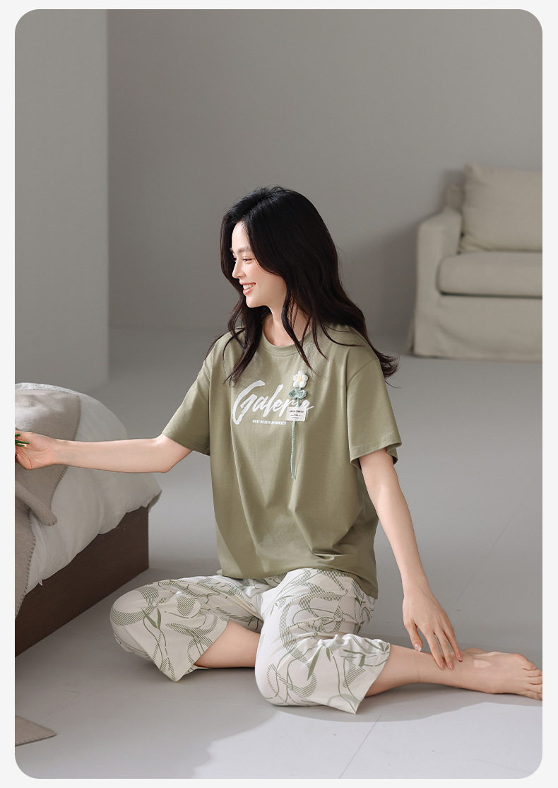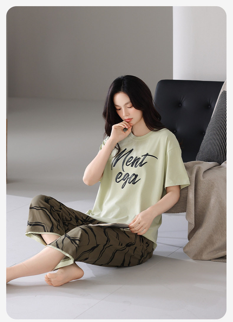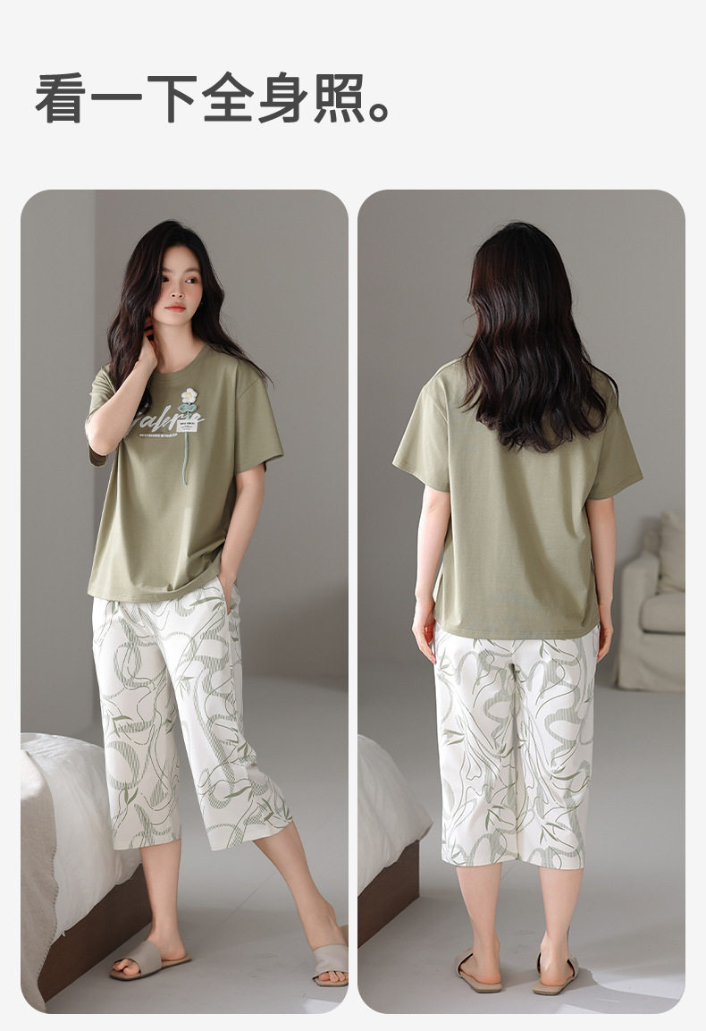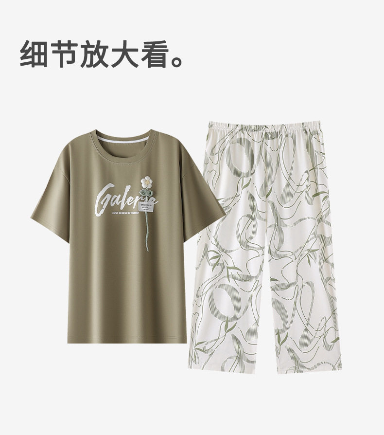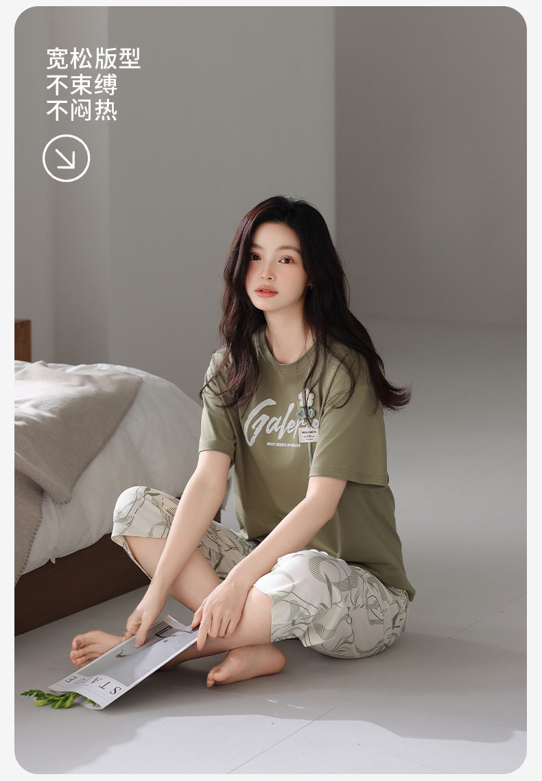 夏季睡衣女士纯棉拉架棉短袖七分裤套装夏天舒适凉爽休闲家居服 JL-HYM5404/HYM5405/HYM5406/HYM5408/HYM5409