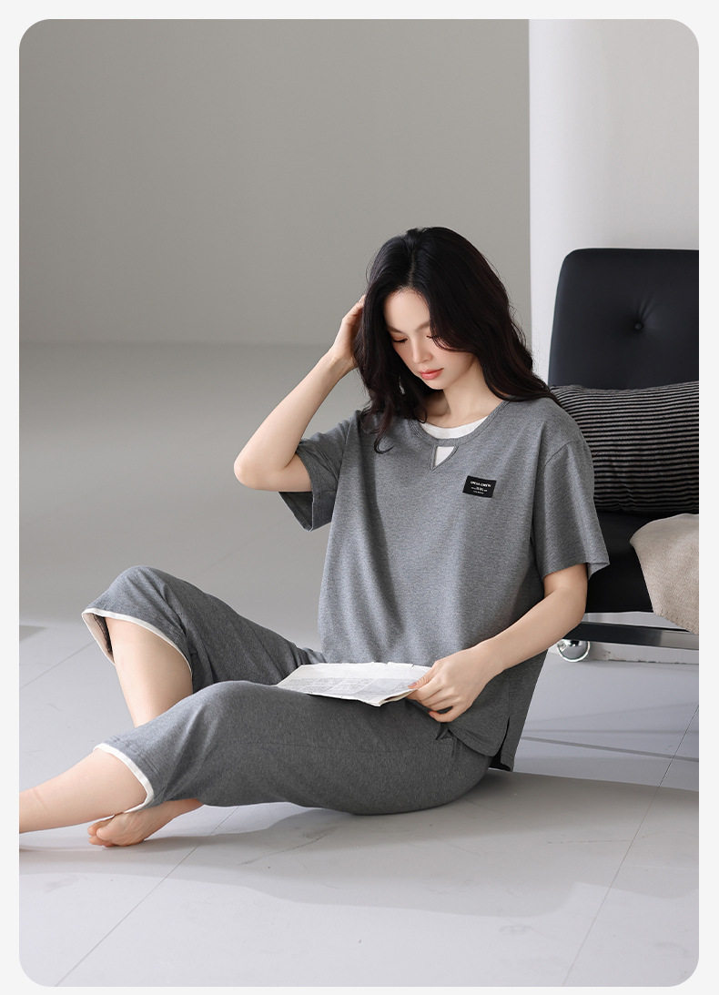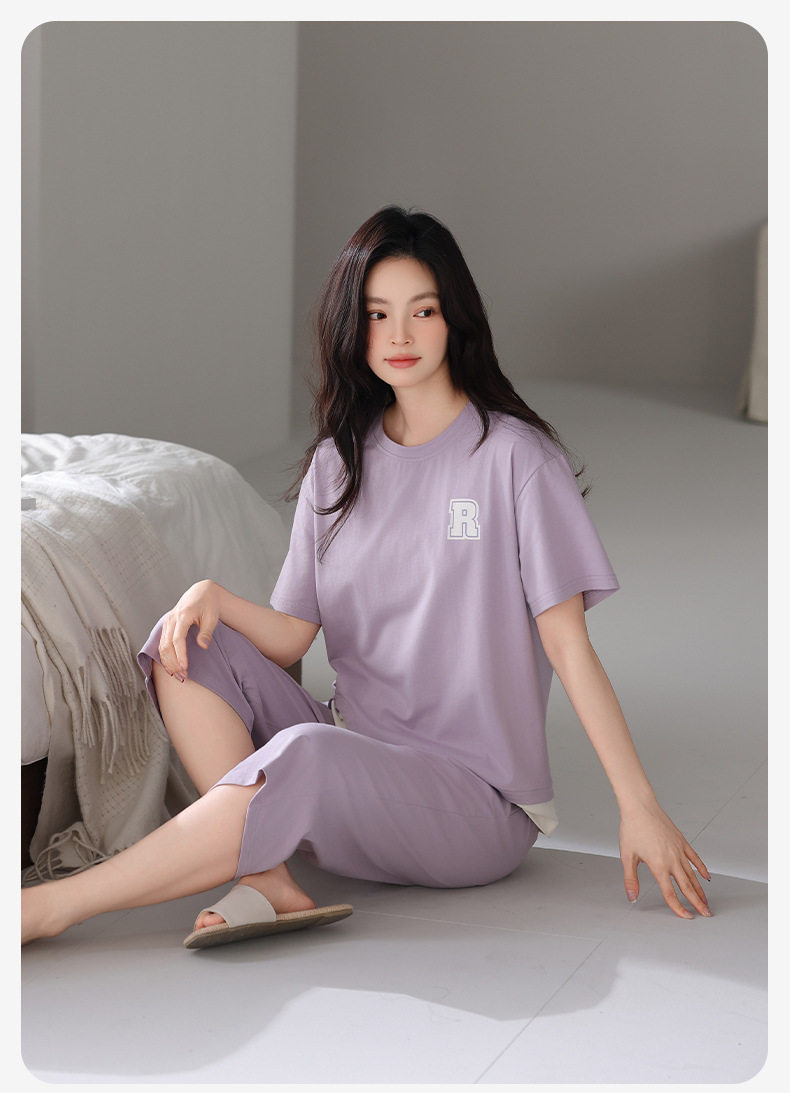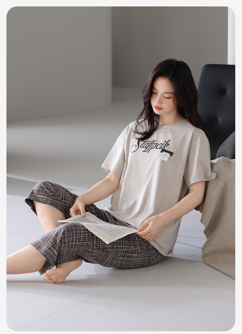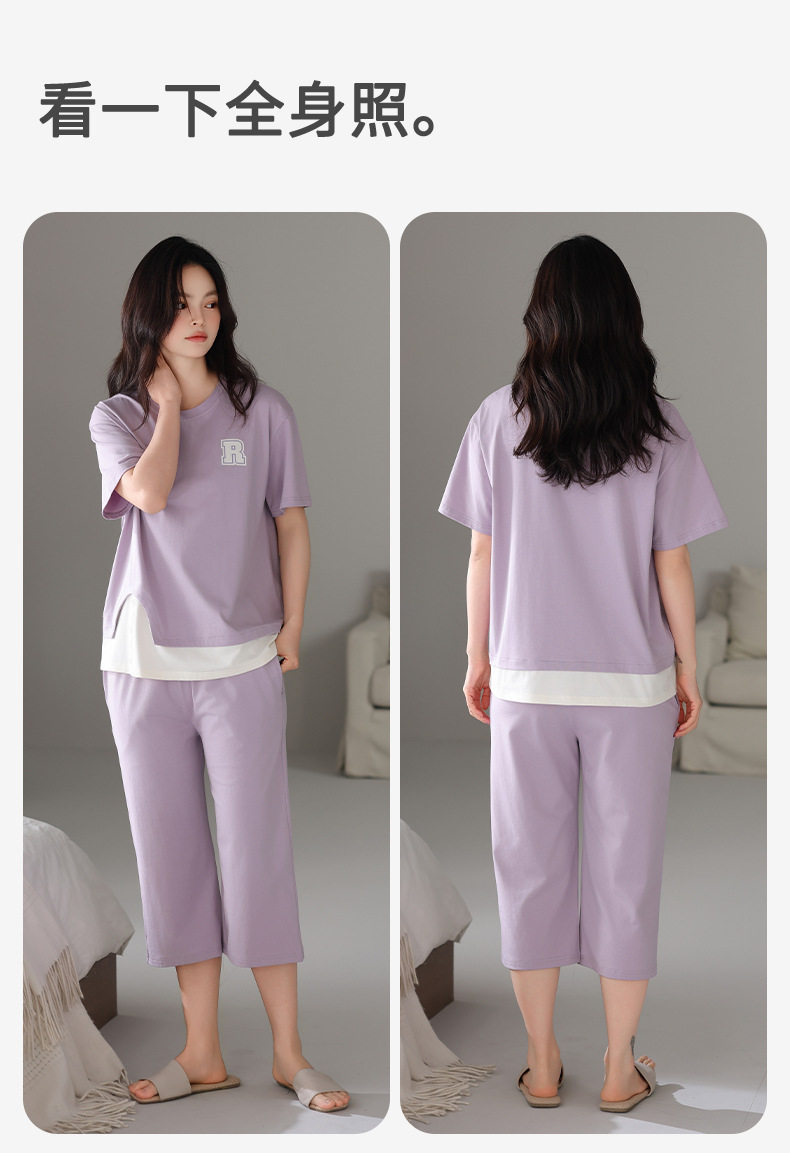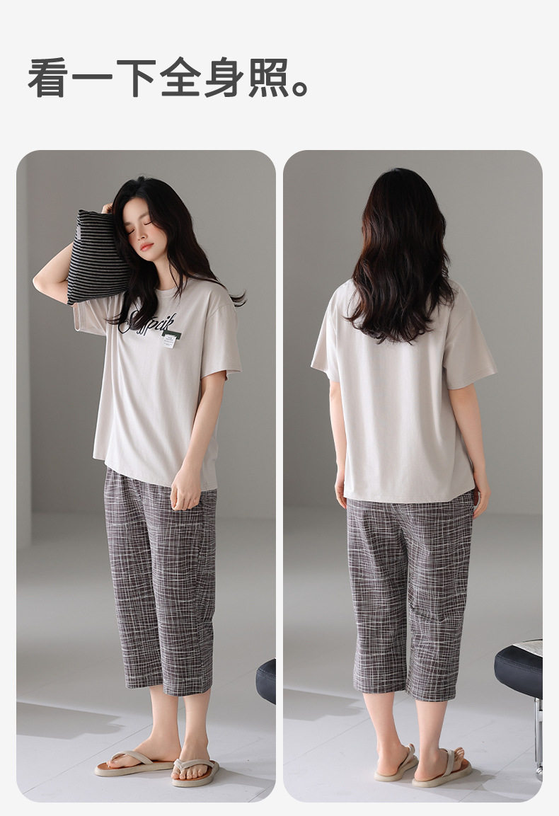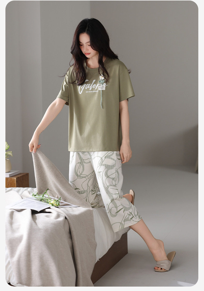 夏季睡衣女士纯棉拉架棉短袖七分裤套装夏天舒适凉爽休闲家居服 JL-HYM5404/HYM5405/HYM5406/HYM5408/HYM5409