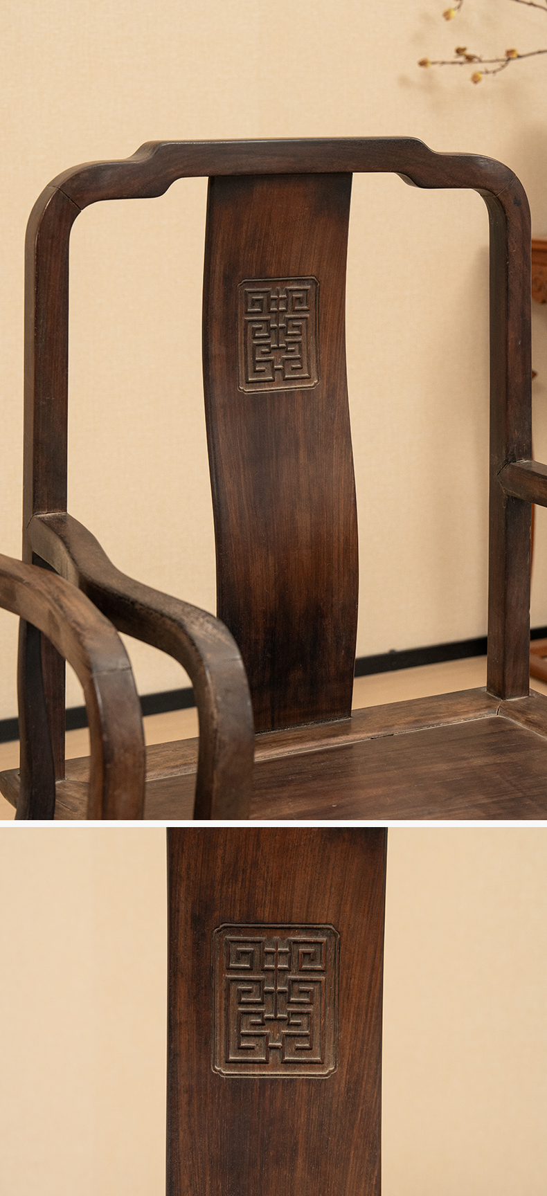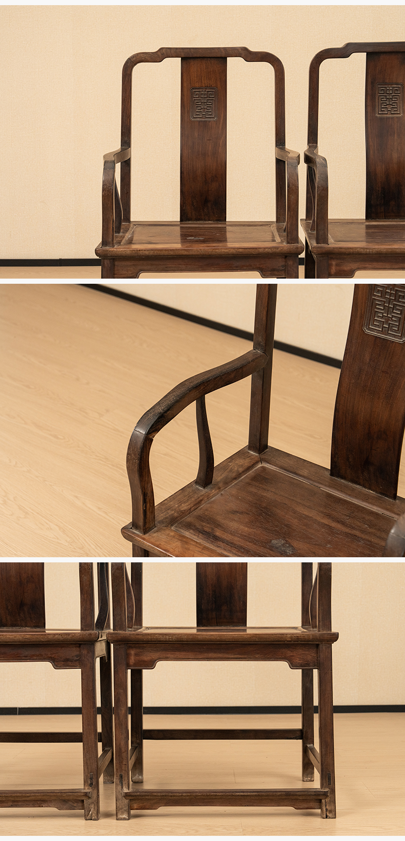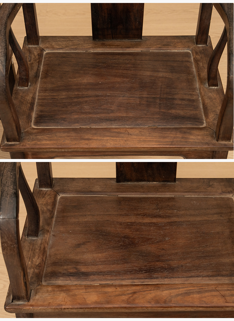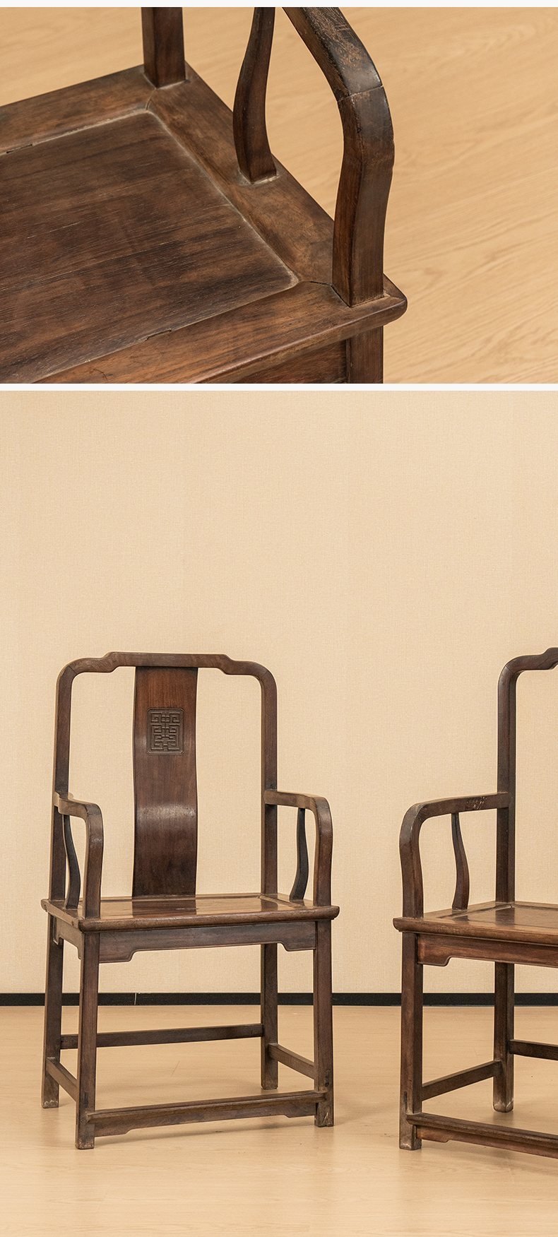 清中期 红木寿字纹方材南官帽椅(一对)