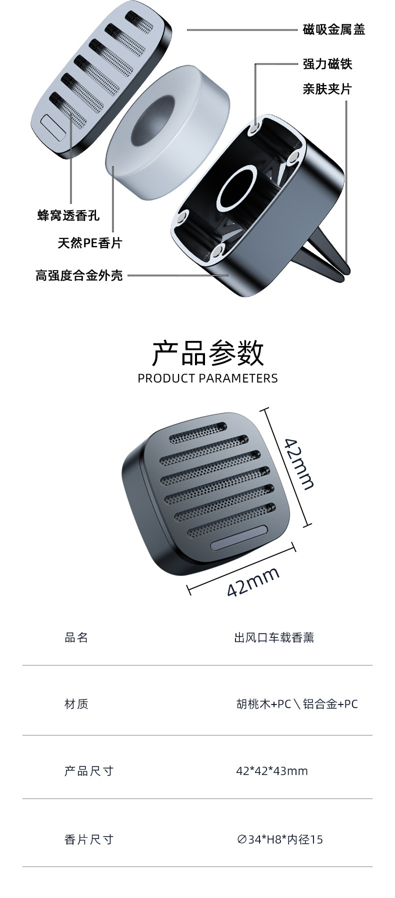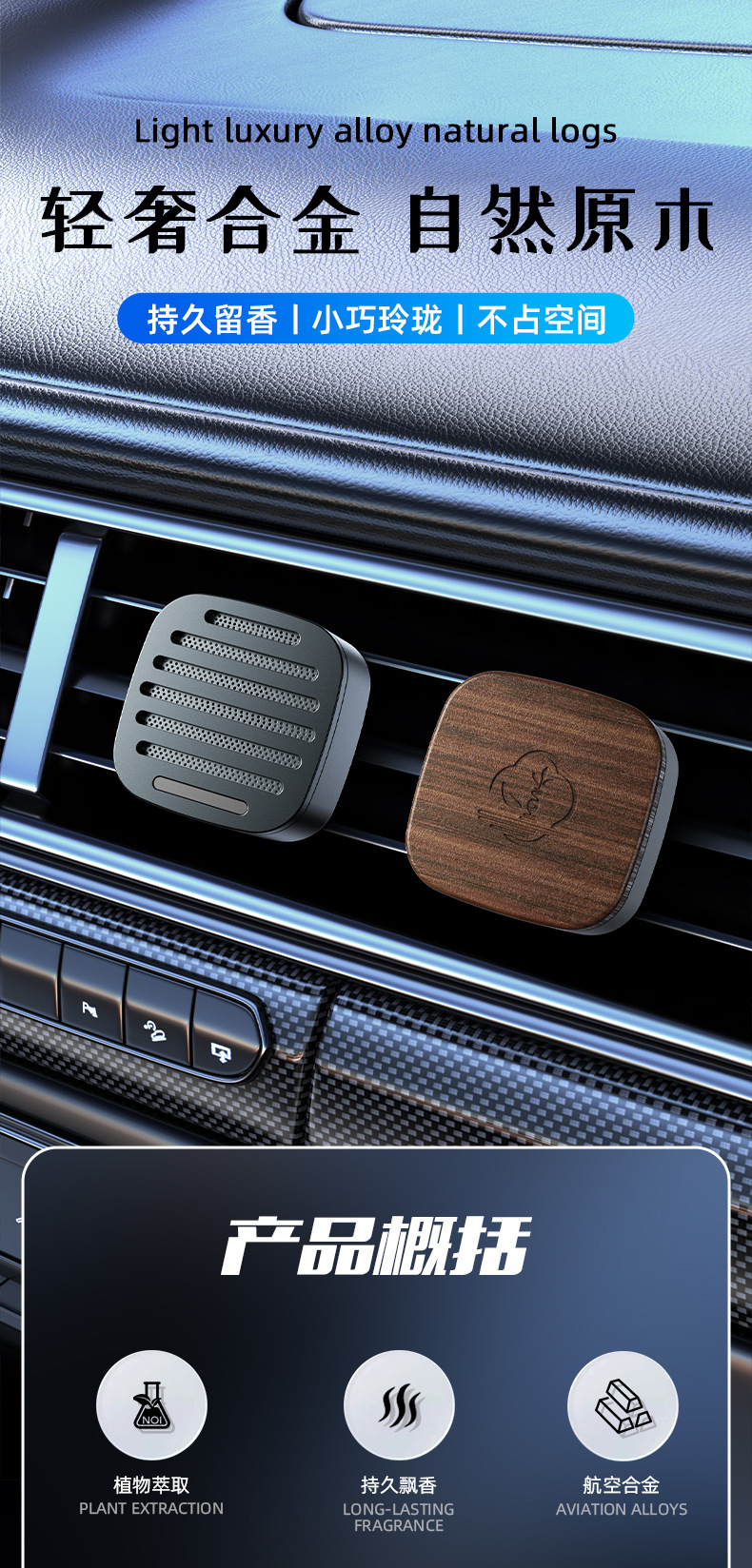 【优选合金与原木❗️植物萃取持久留香】车载香薰出风口车用香水除异味空调口摆件香片汽车车内。ja
