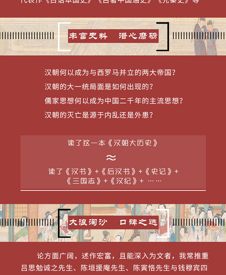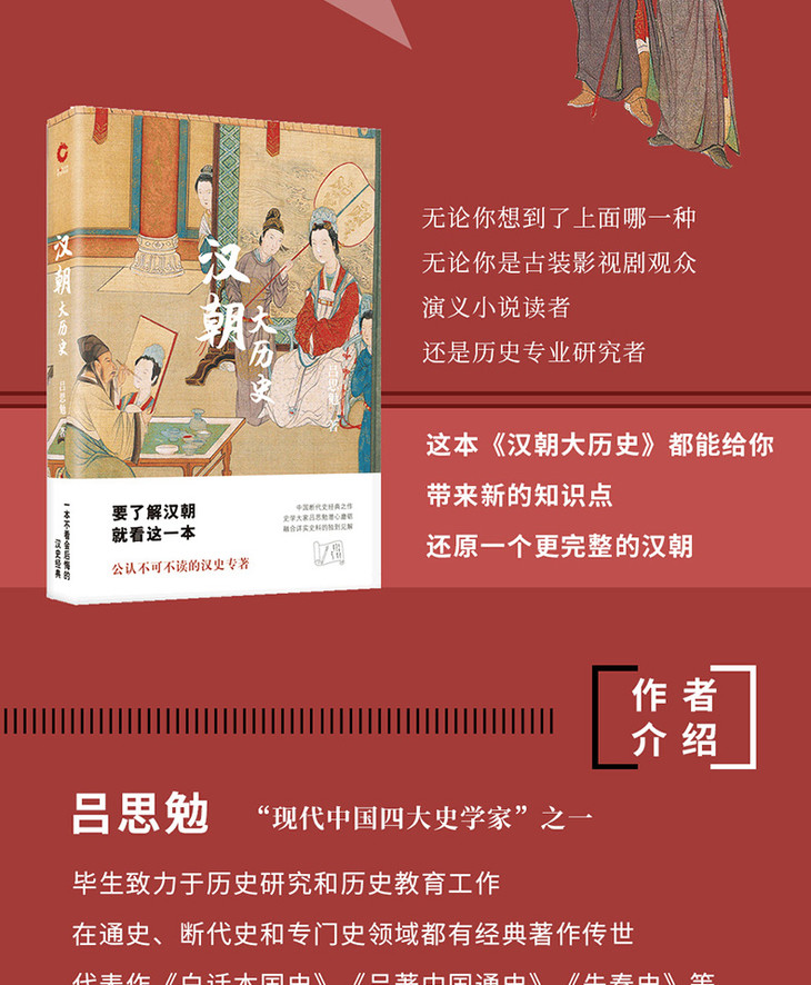 《汉朝大历史》是吕思勉先生的四部断代史之一,全书渗透着吕思勉先生用新方法、新思想来整理旧国故的精神,被公认为研究汉朝历史的经典之经典。汉朝何以成为与西罗马并立的两大帝国?汉朝的大一统局面是如何出现的?儒家思想何以成为中国二千年的主流思想?宦官集团与外戚集团的血雨纷争的真实内幕?汉朝五大建国功臣的生死离歌?汉朝的灭亡是源于内乱还是外患?《汉朝大历史》为你揭开四百年汉朝历史重重迷雾,揭示四百年风云变幻的历史疑云。