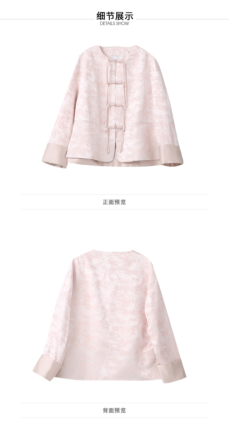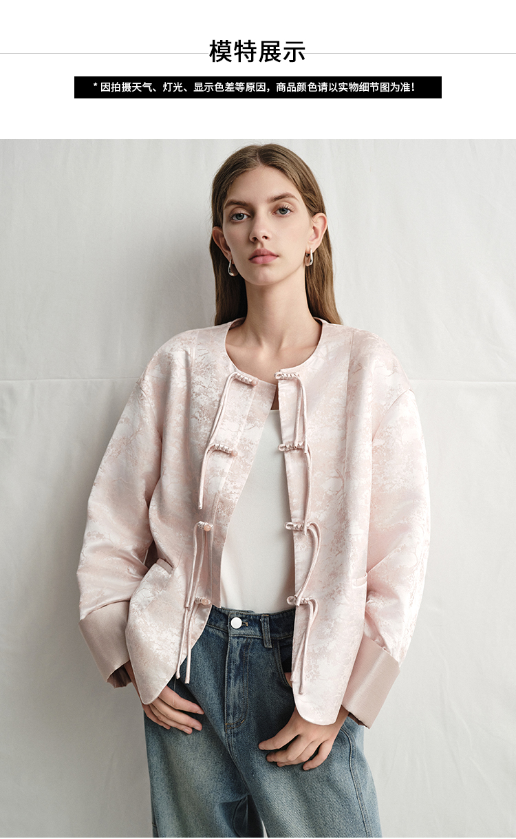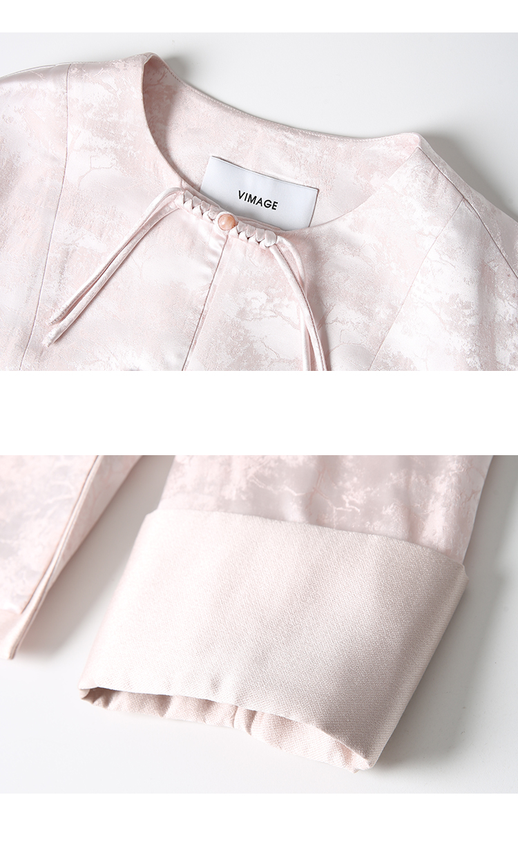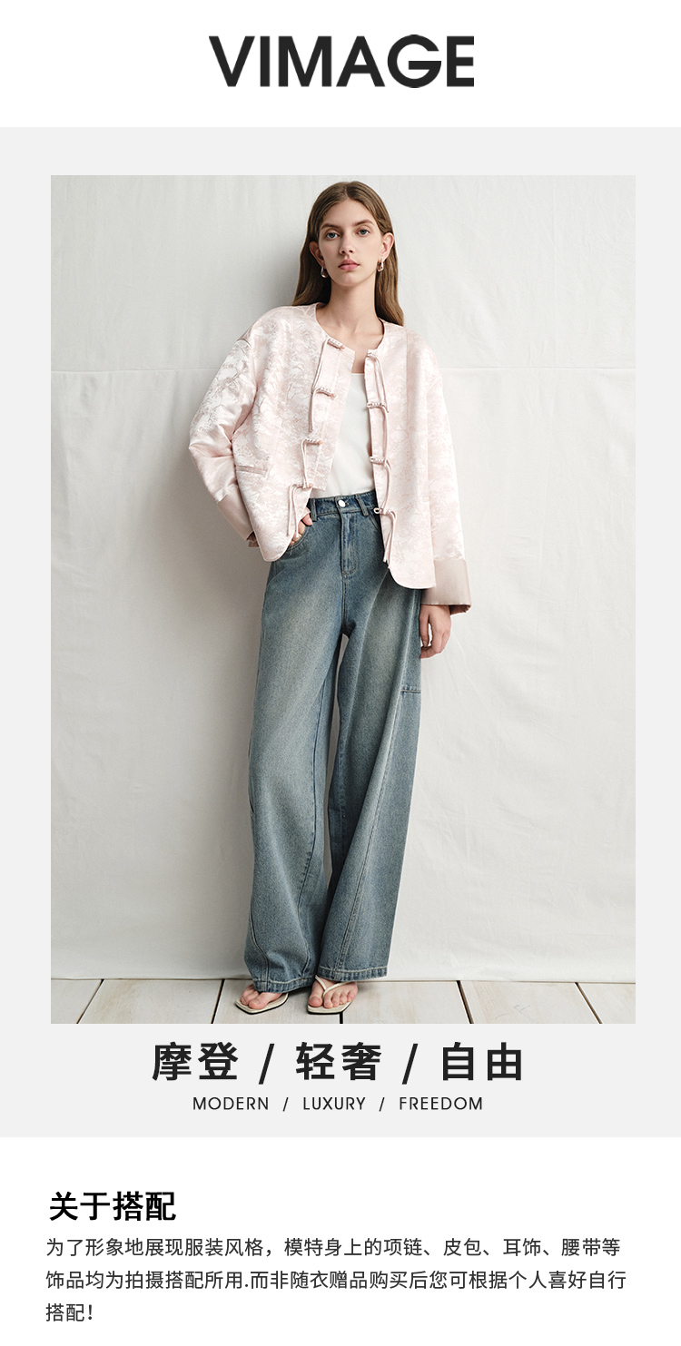 VIMAGE纬漫纪浅粉色新中式盘扣圆领直筒舒适短外套2025春季新款V2303903