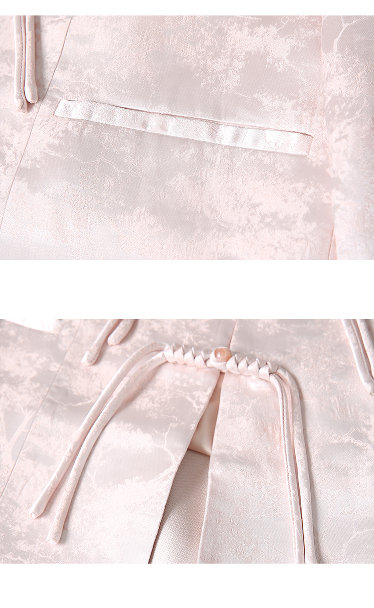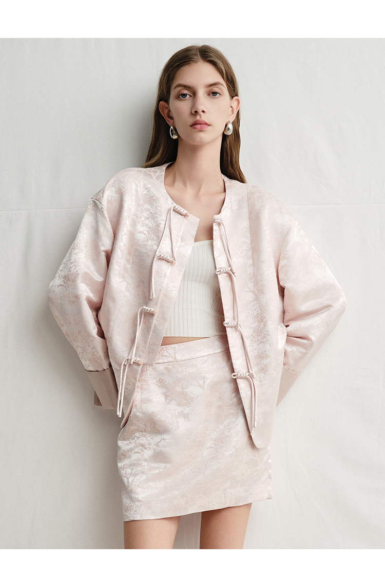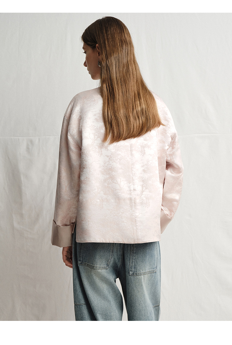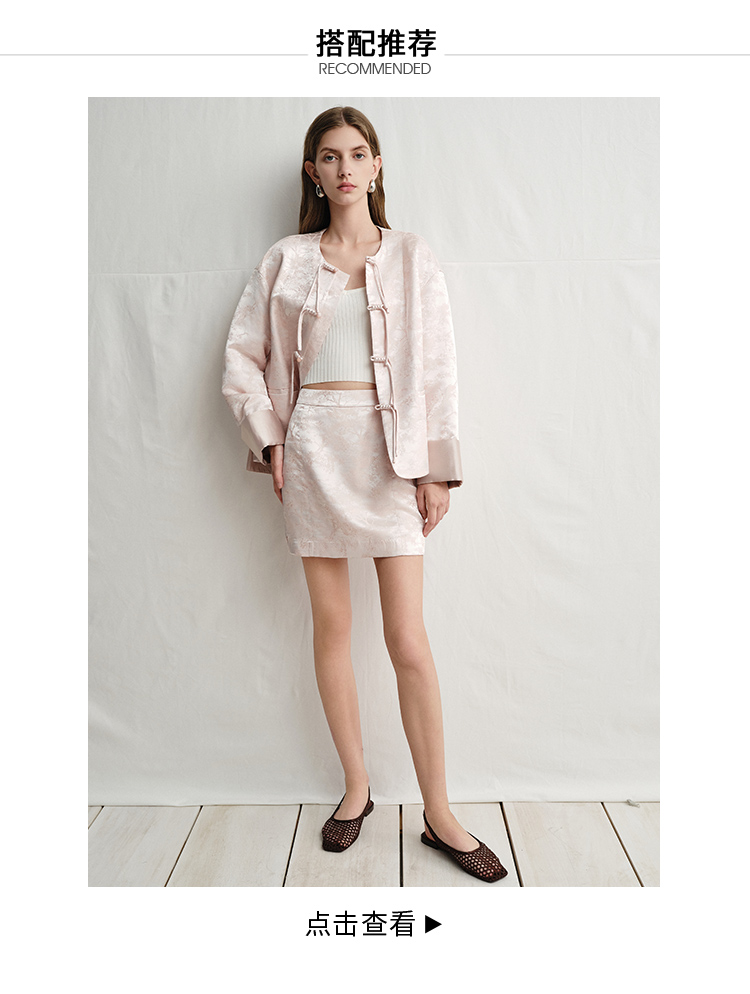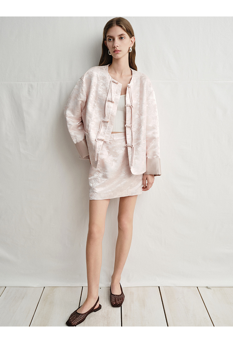 VIMAGE纬漫纪浅粉色新中式盘扣圆领直筒舒适短外套2025春季新款V2303903