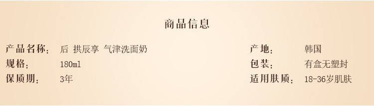 韩国后拱辰享气韵生润颜洁面膏180g 洗面奶