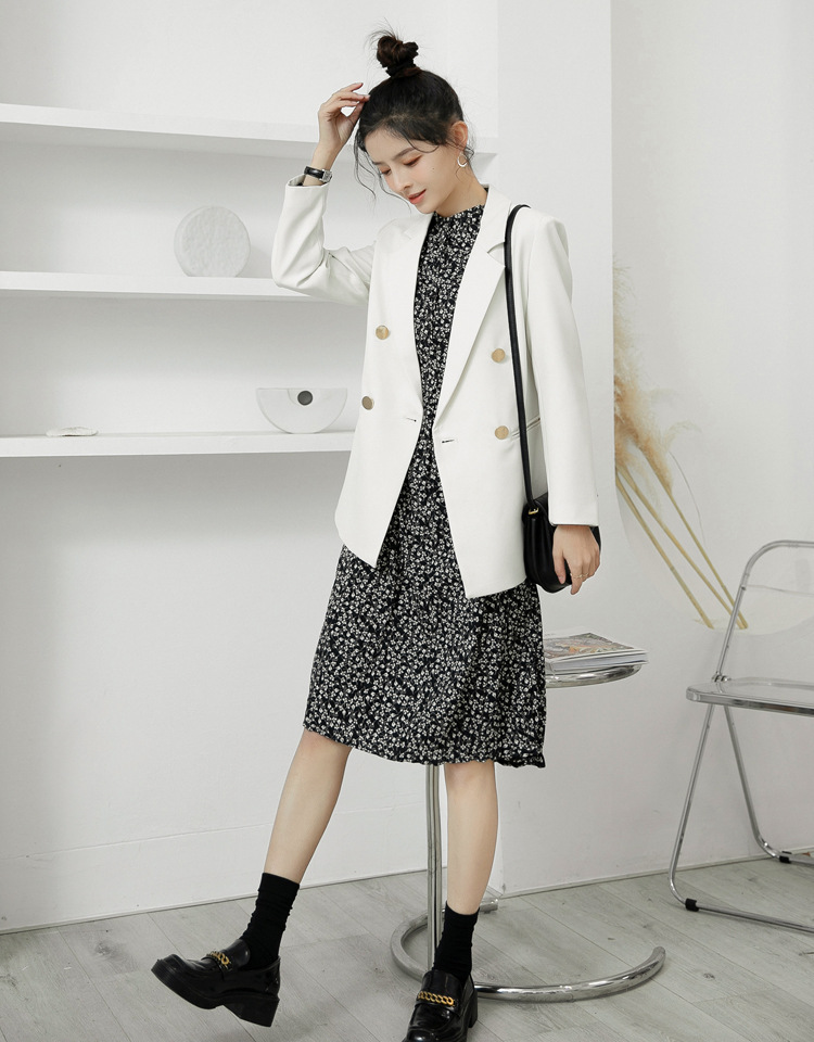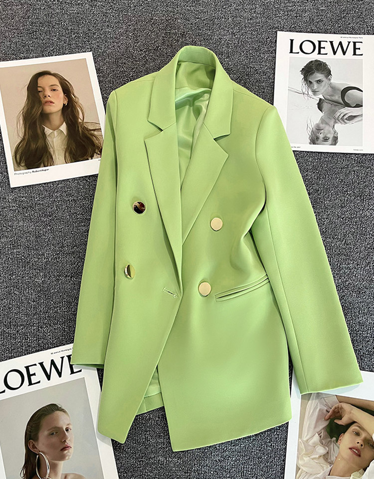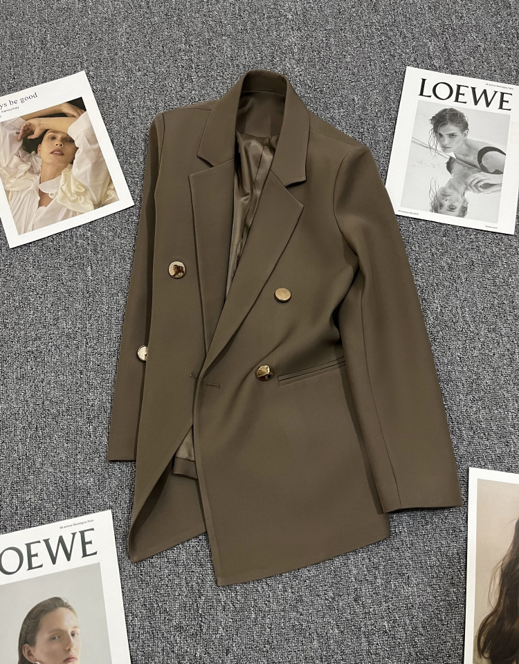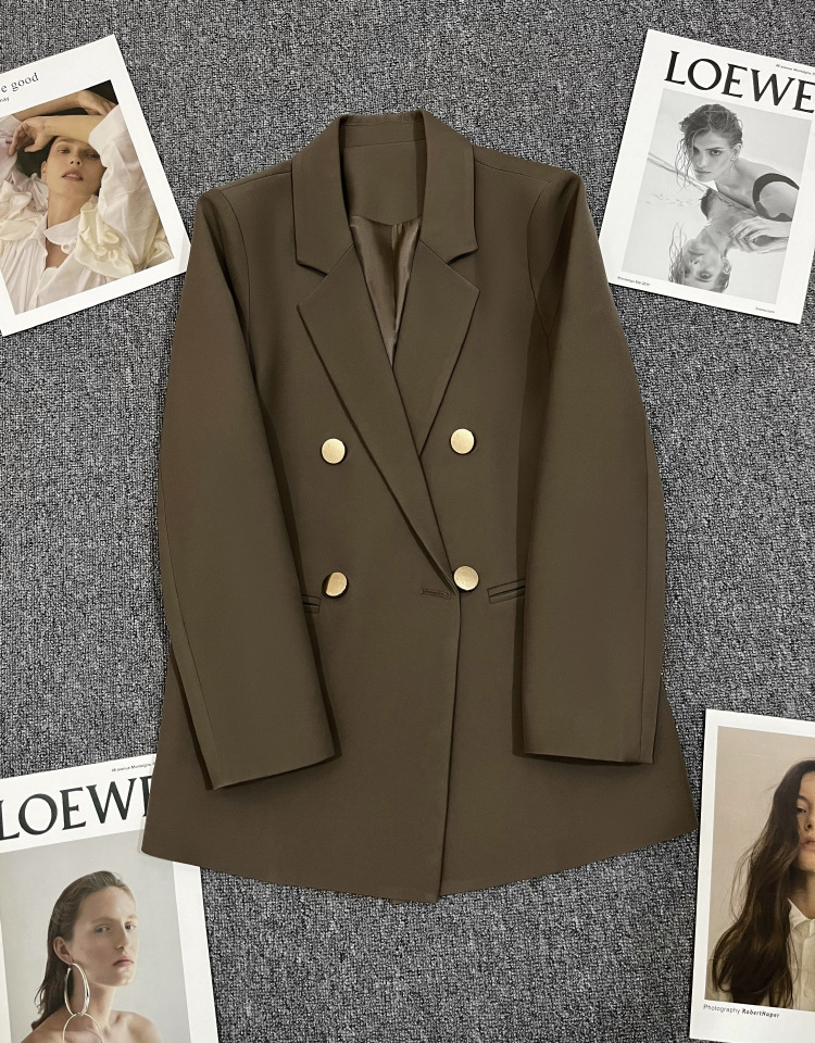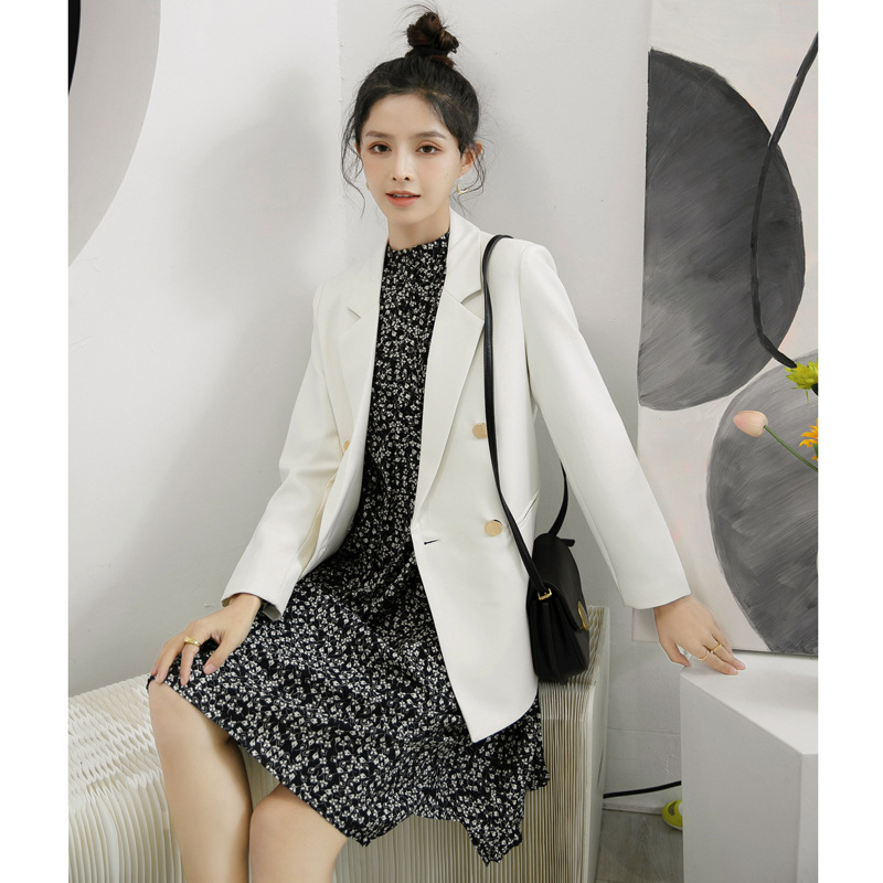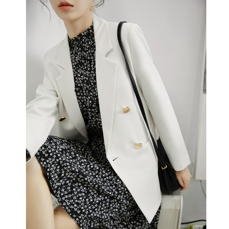 雀说 春秋季新款西装外套女金属扣英伦风休闲百搭乳白色减龄小个子西服潮5ZF-21705
