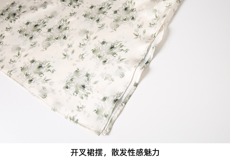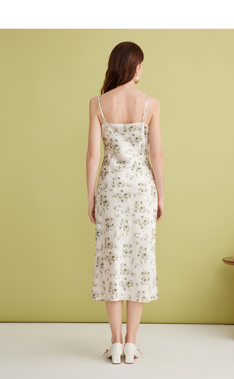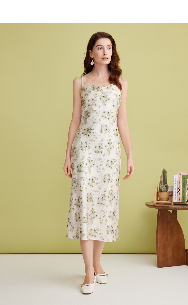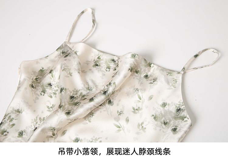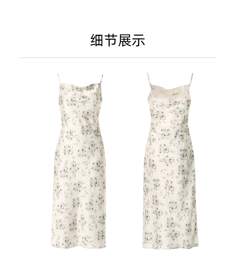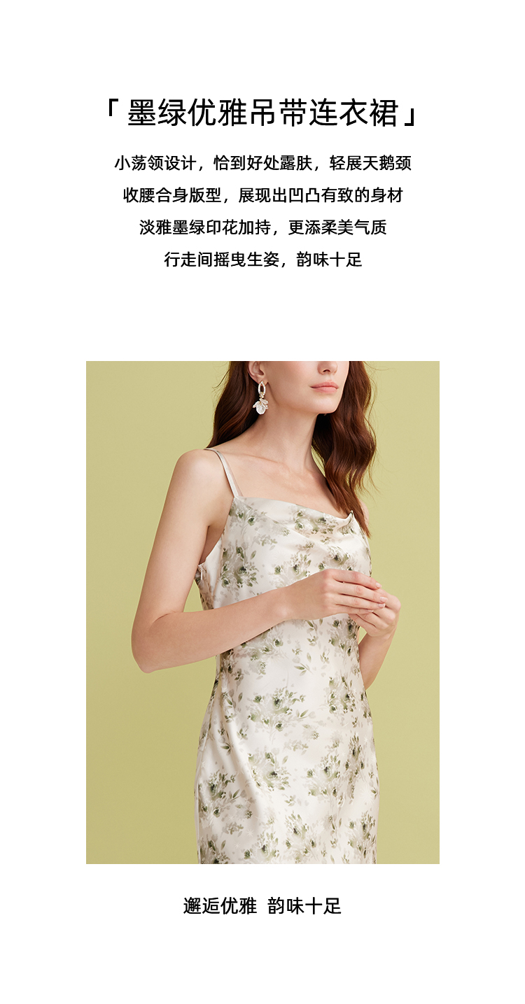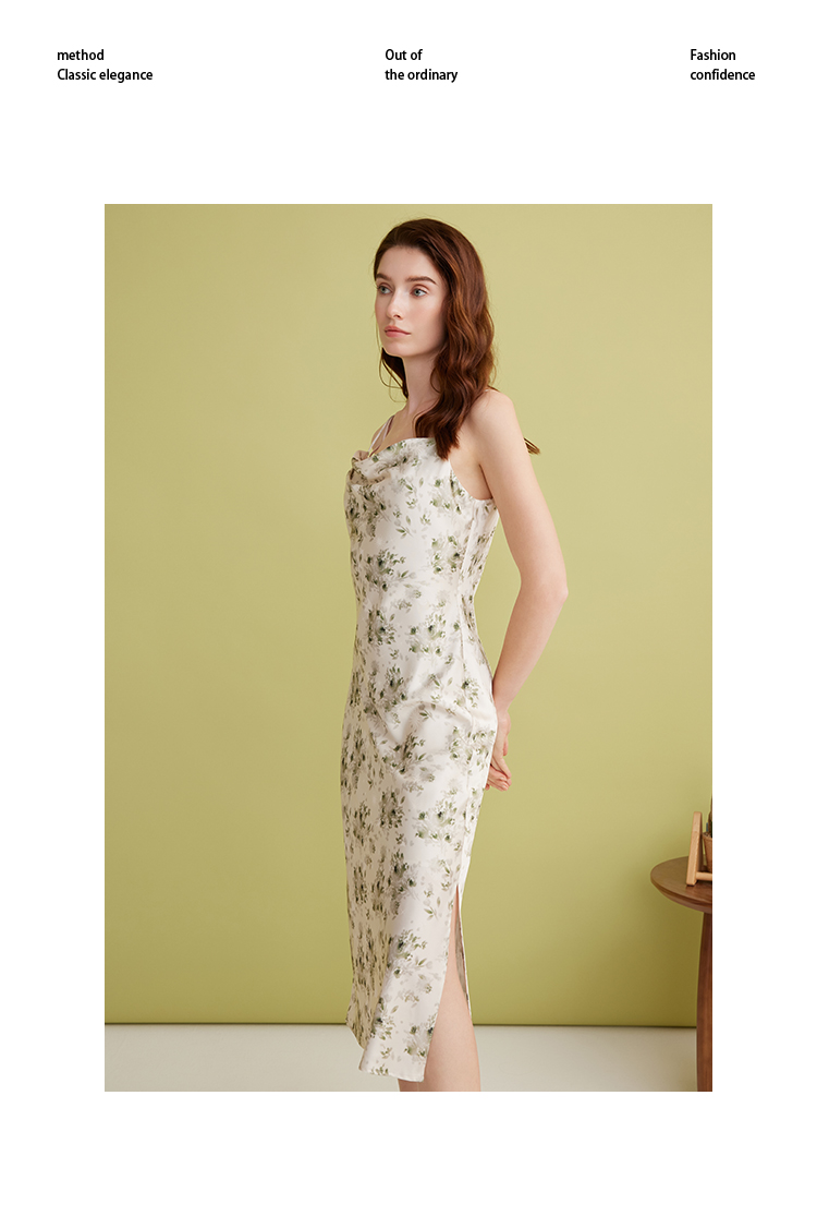 EITIE爱特爱优雅气质通勤显瘦印花荡领开叉吊带连衣裙2025春季新款A2507517