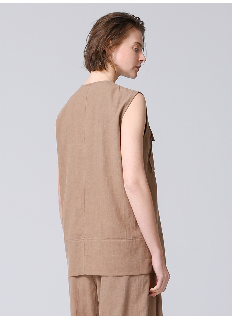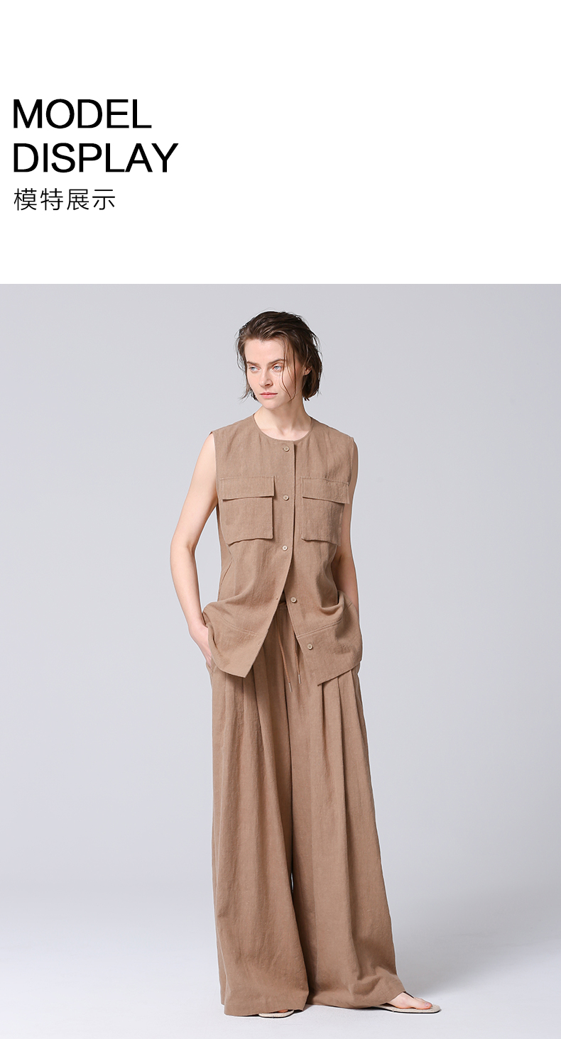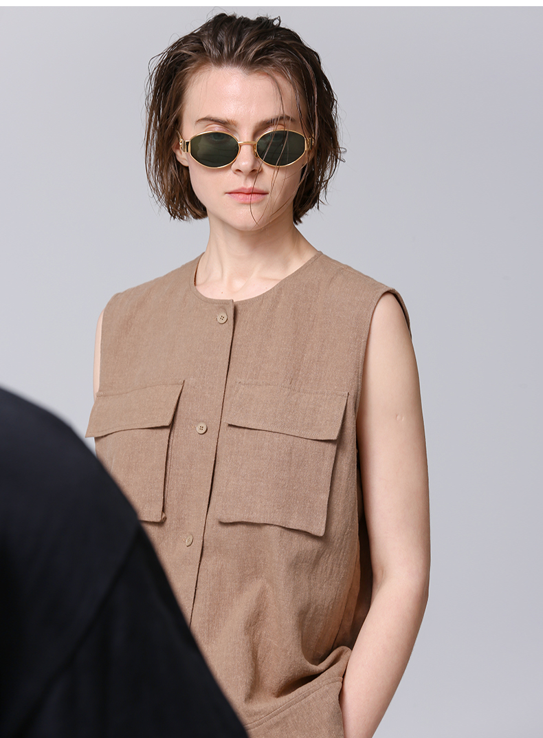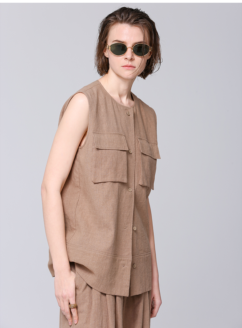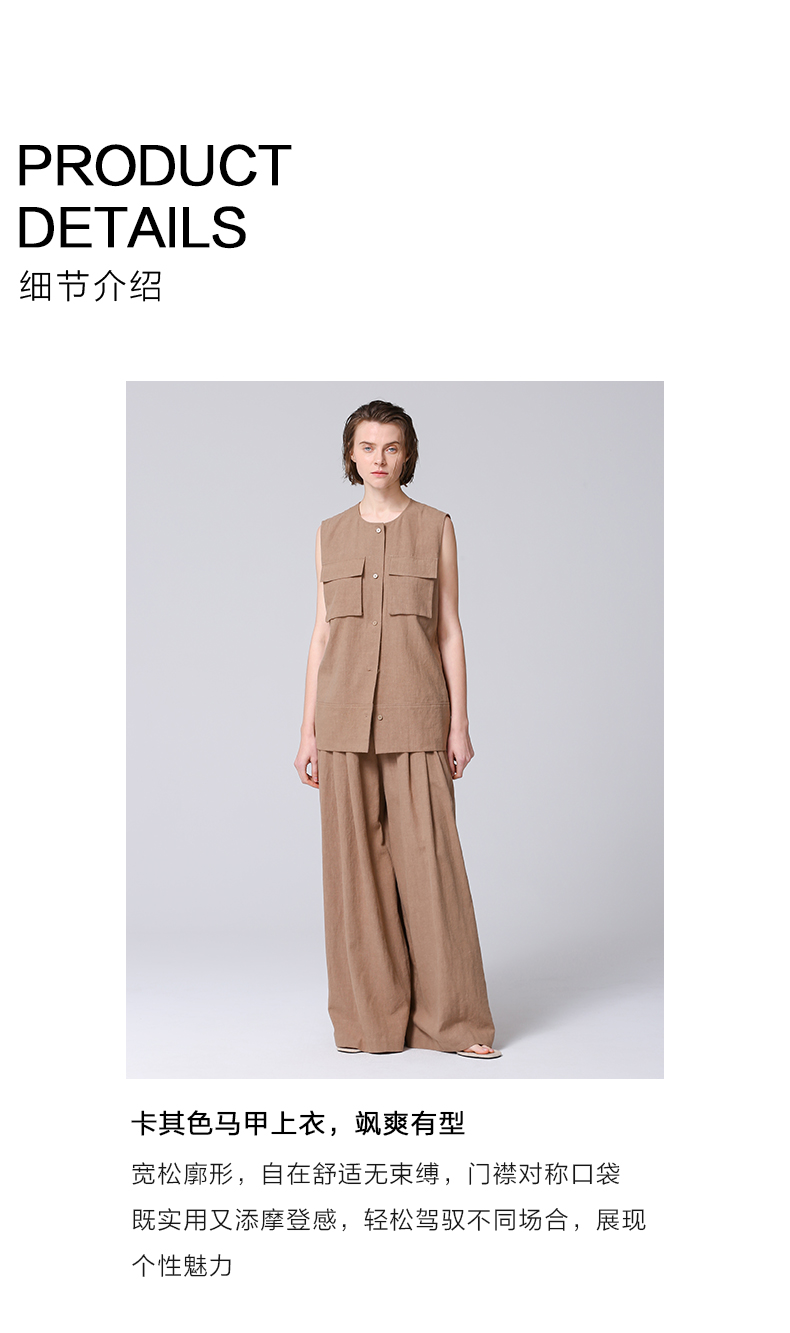 VIMAGE纬漫纪工装风卡其色圆领宽松无袖背心马甲上衣夏季新款V2313954