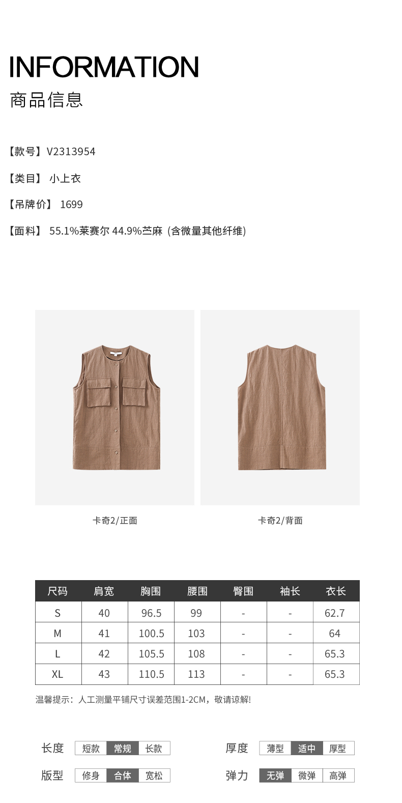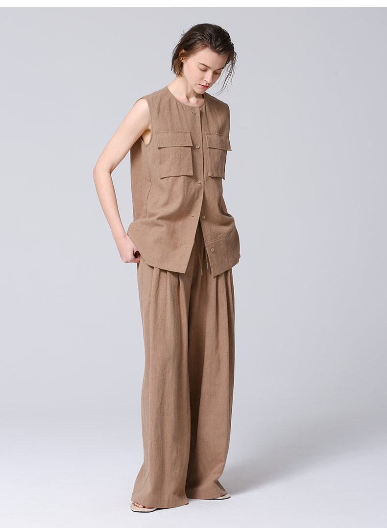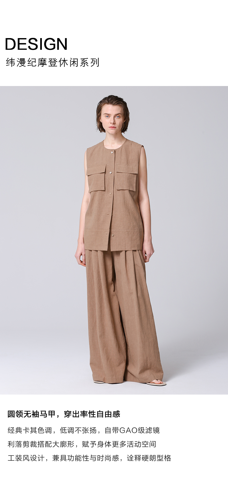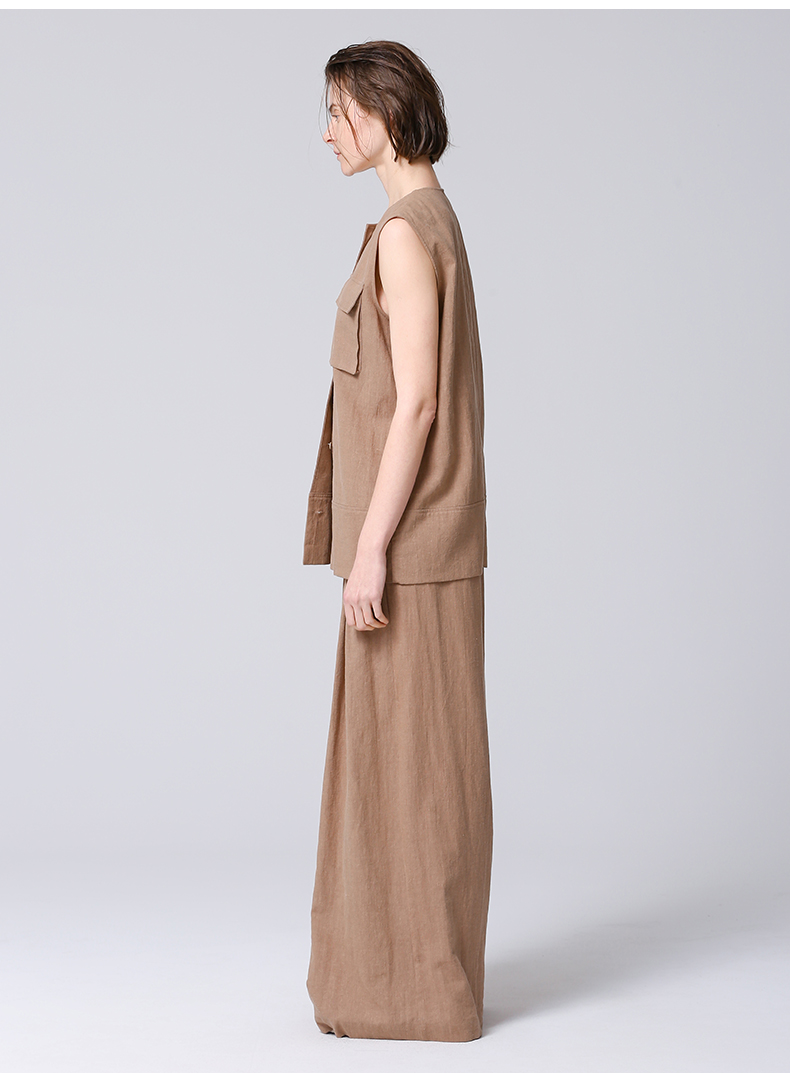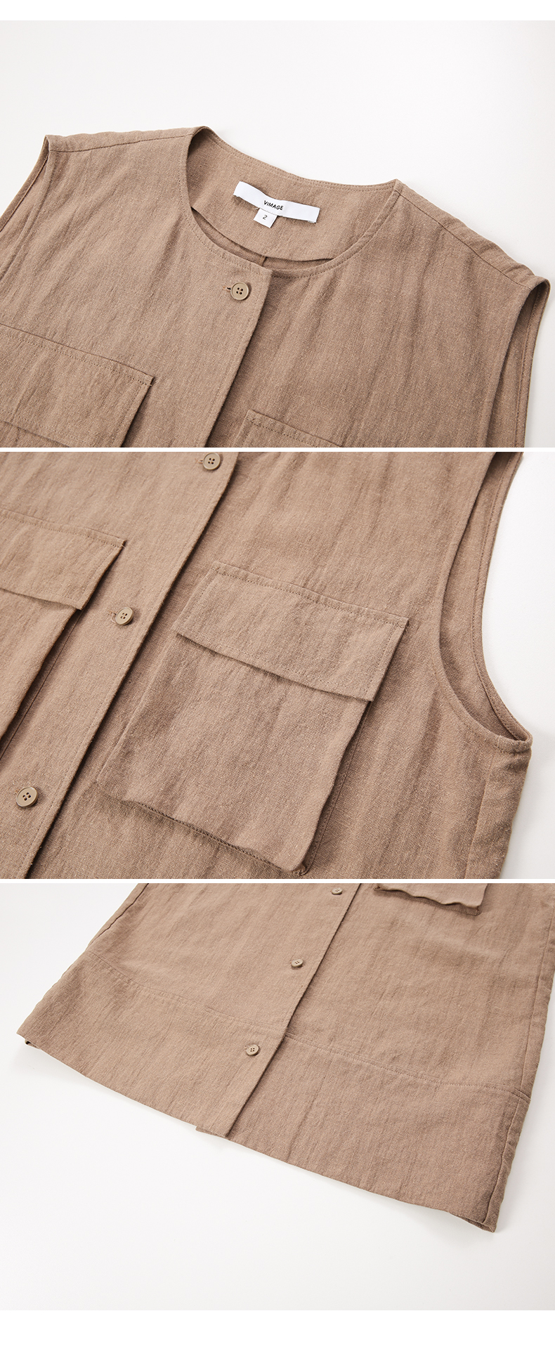 VIMAGE纬漫纪工装风卡其色圆领宽松无袖背心马甲上衣夏季新款V2313954